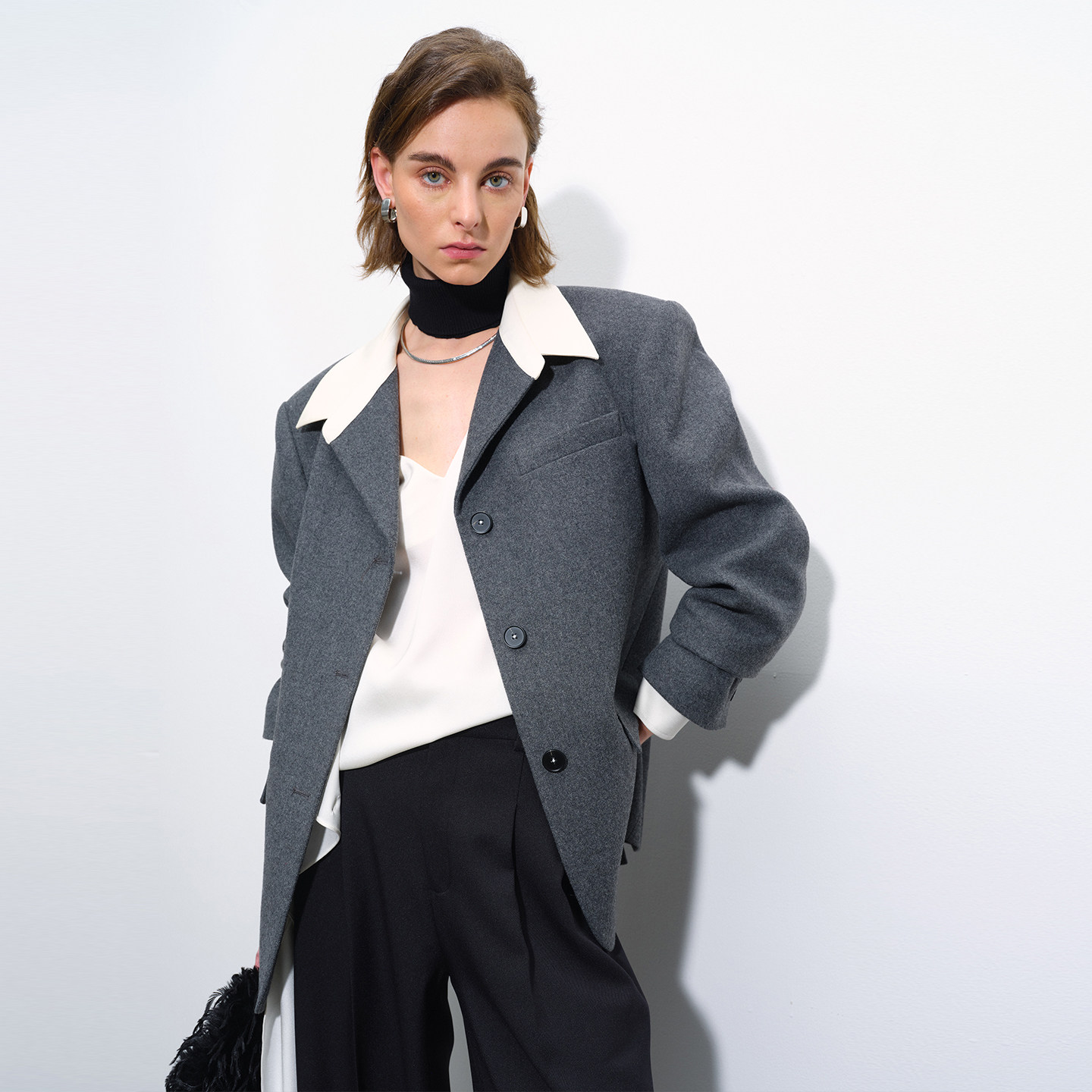 APARALLEL廓形衬衫领羊毛西服