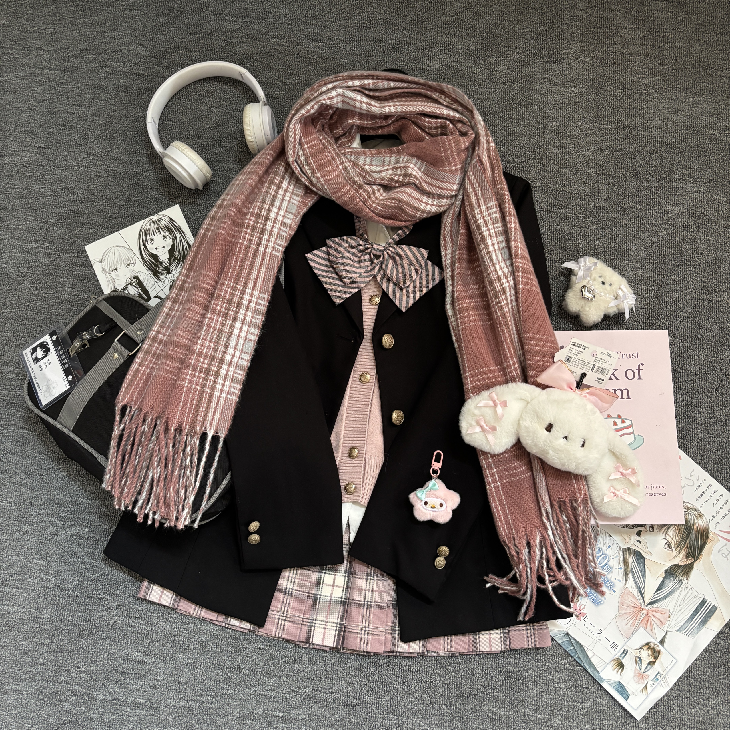 首页> 女装> 【粉色系JK套装】海月社原创JK粉色系列穿搭西服开衫毛衣格裙叠穿