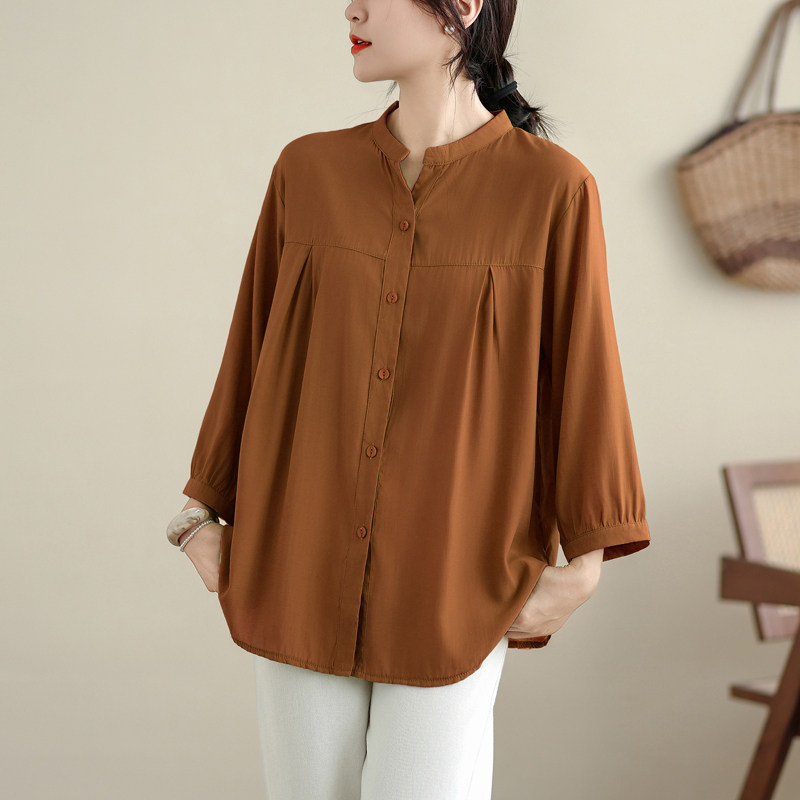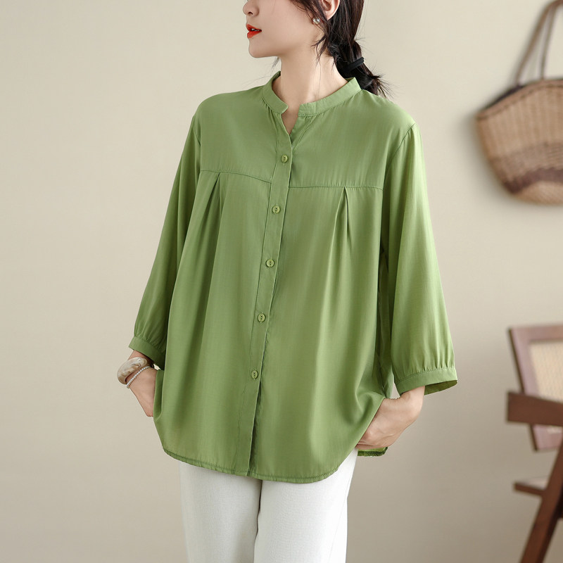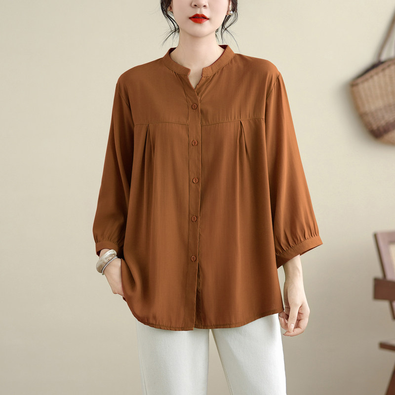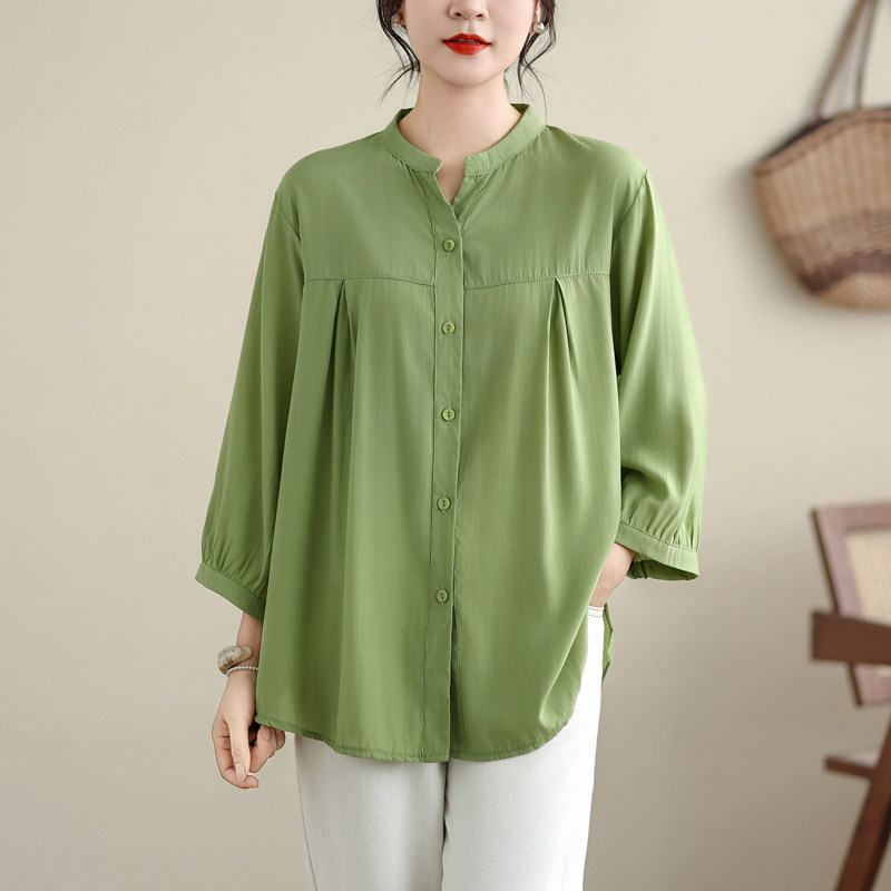 韩版大码女装宽松遮肚七分袖开衫胖MM防晒衫初秋新款棉绸上衣衬衫