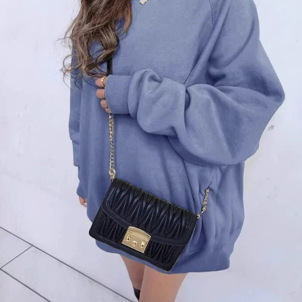 D07087日单新款GL螺纹圆领套头宽松显瘦女纯色甜美保暖加绒卫衣