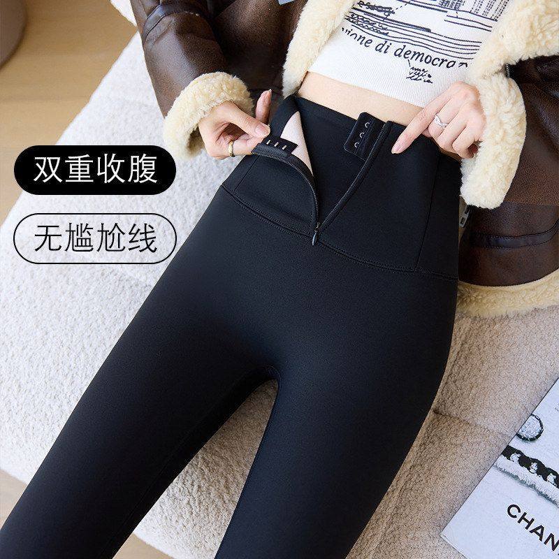 拉链排扣鲨鱼裤女外穿秋冬加绒保暖加厚打底裤高腰收腹塑形芭比裤