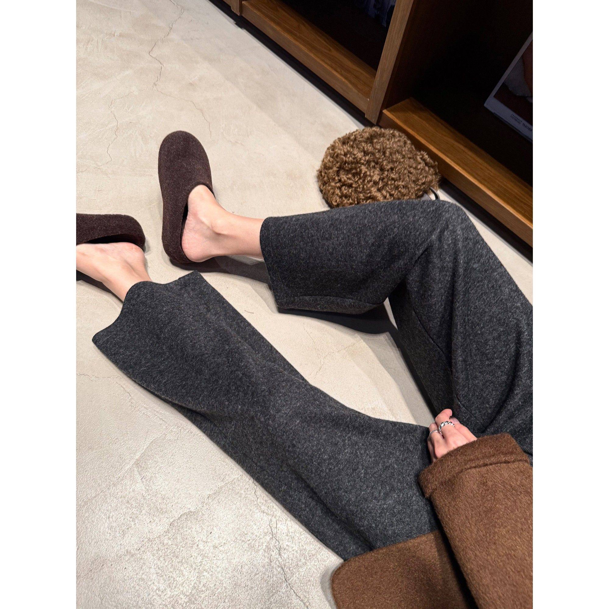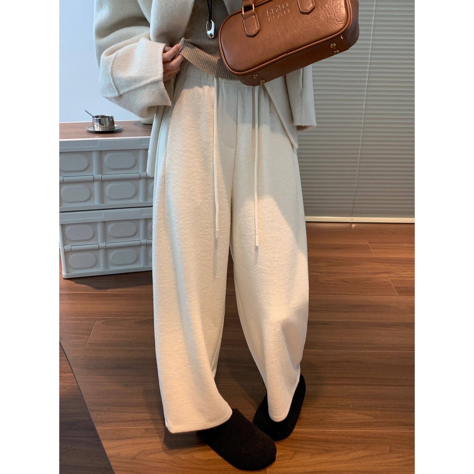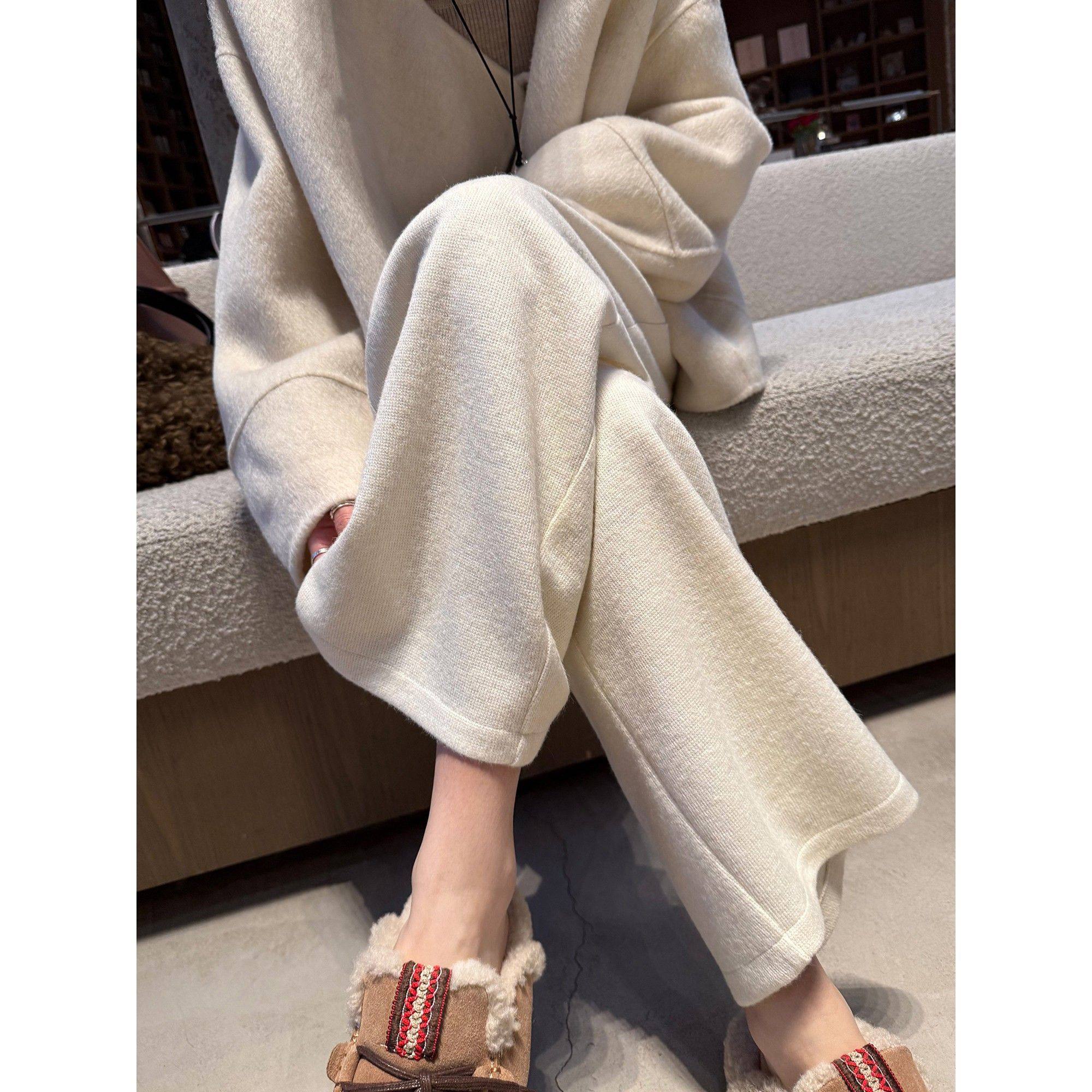 白色羊毛九分阔腿裤女秋冬季糯米裤高腰直筒卫裤垂坠感小个子裤子