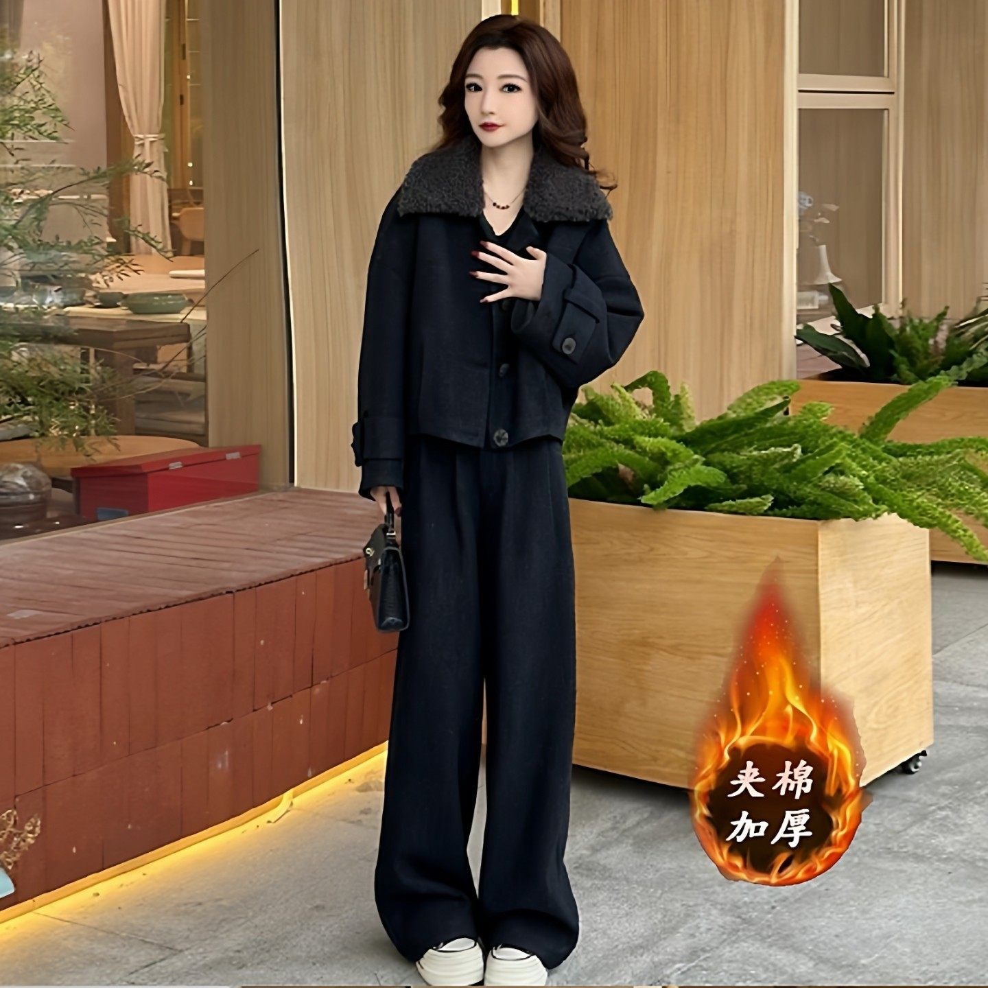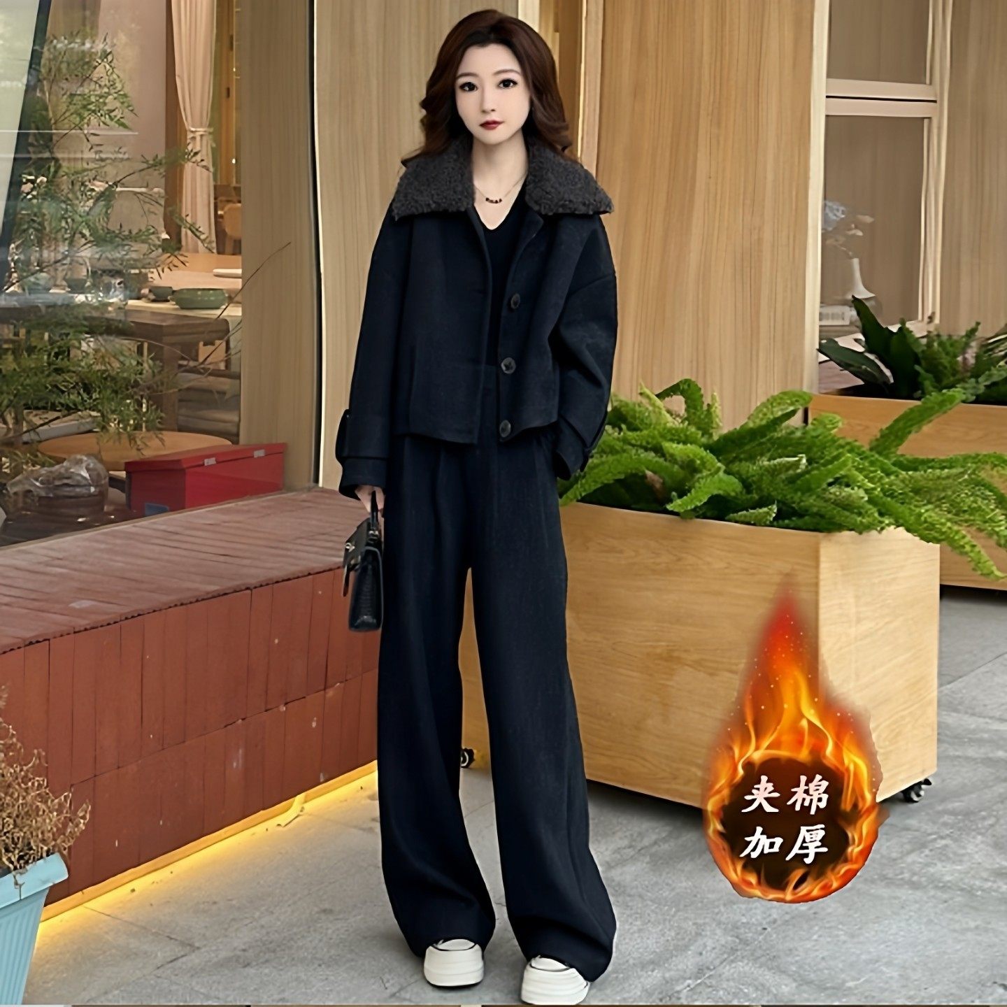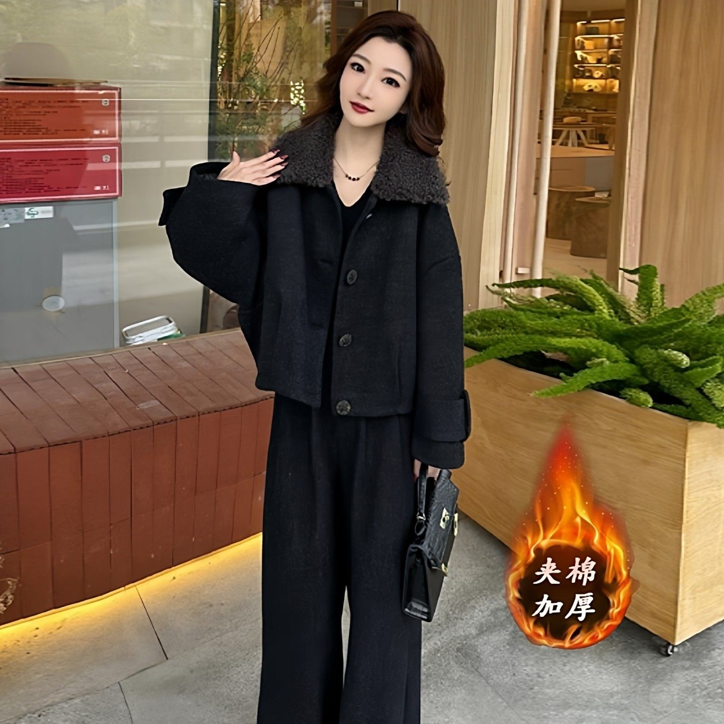 茉莉高定巨好看的两件套冬装时尚毛呢女2025新款加棉短外套阔腿裤