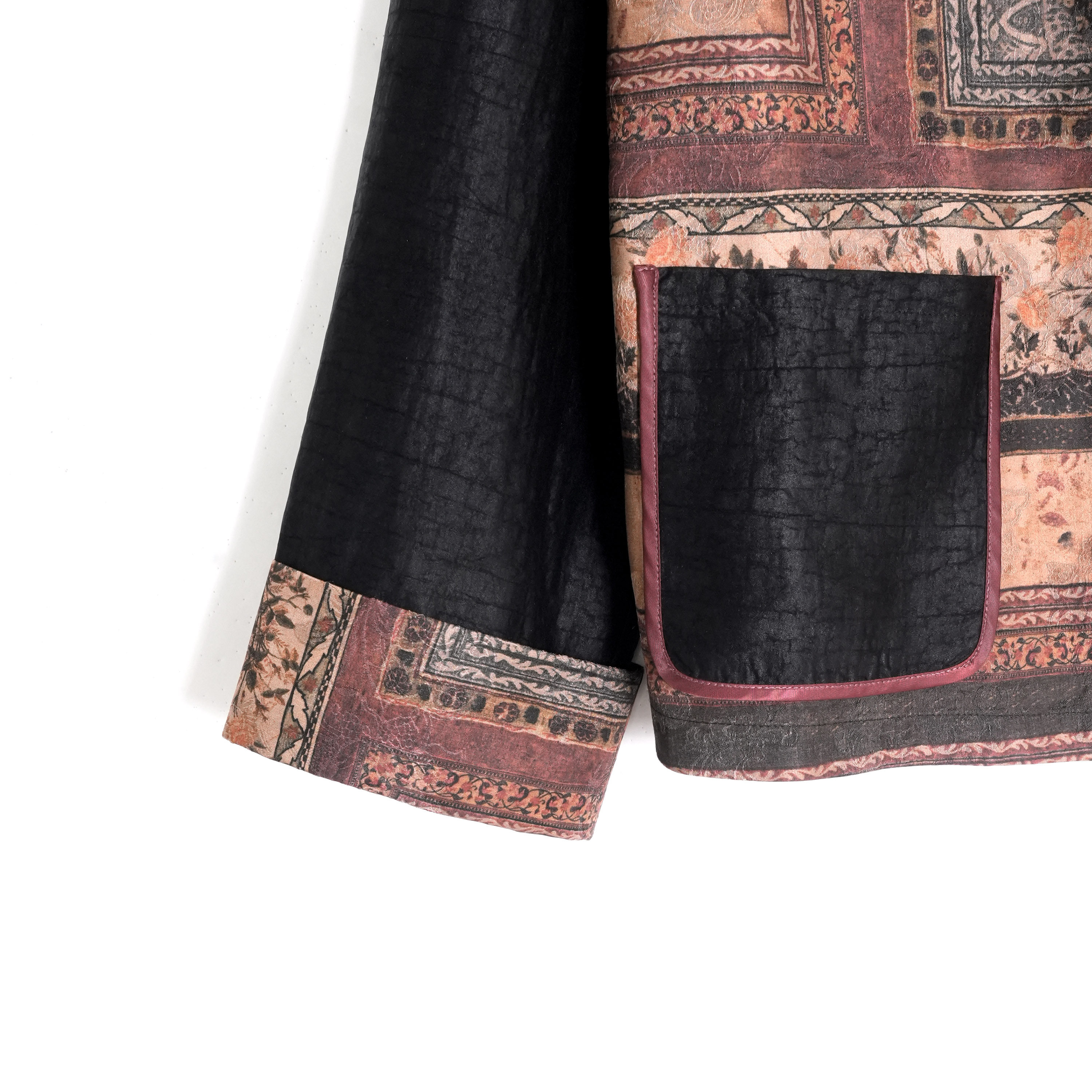 【千盈】徐淼淼早春龟纹拼色非遗香云纱新中式桑蚕丝上衣CV1885
