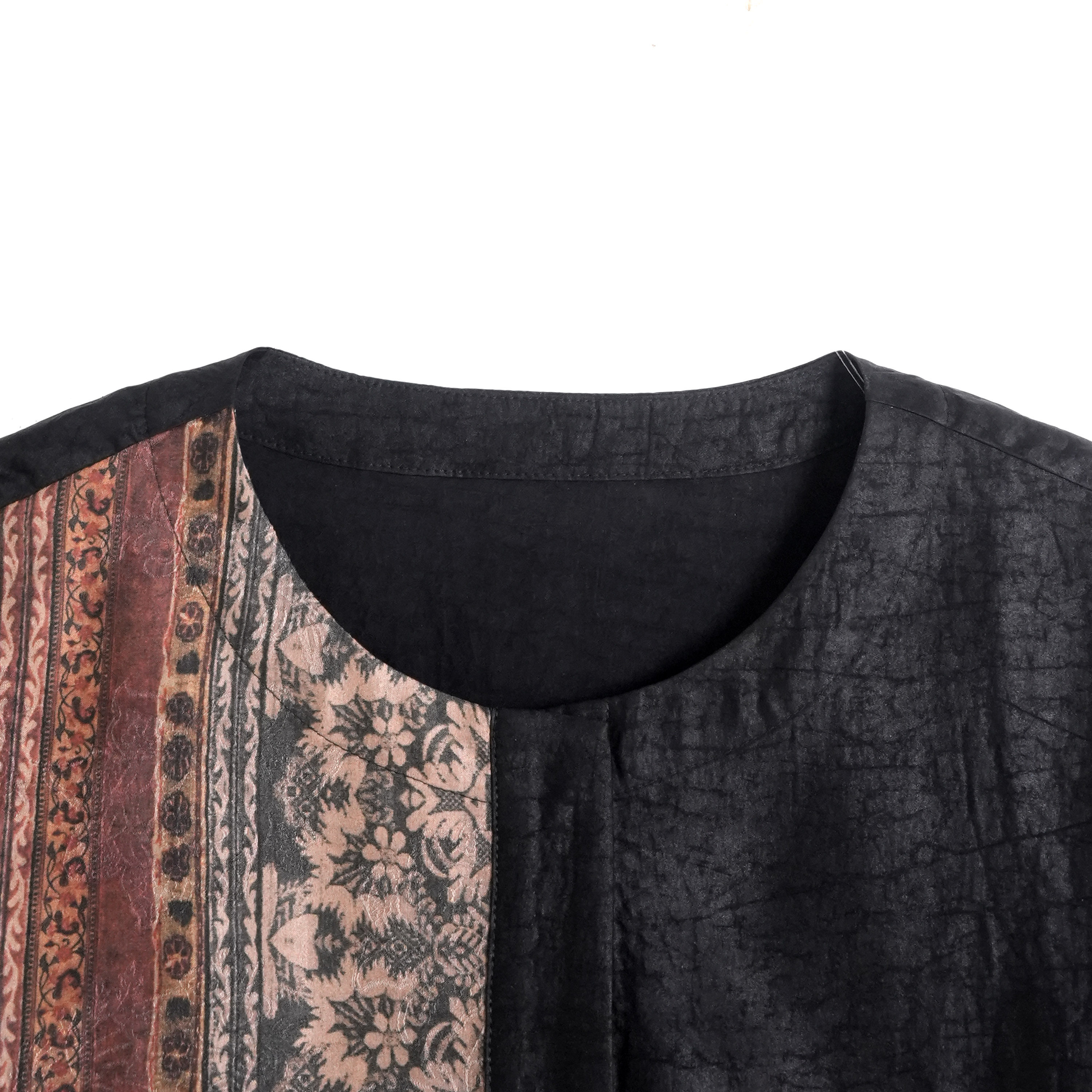 首页> 女装> 【千盈】徐淼淼早春龟纹拼色非遗香云纱新中式桑蚕丝上衣CV1885