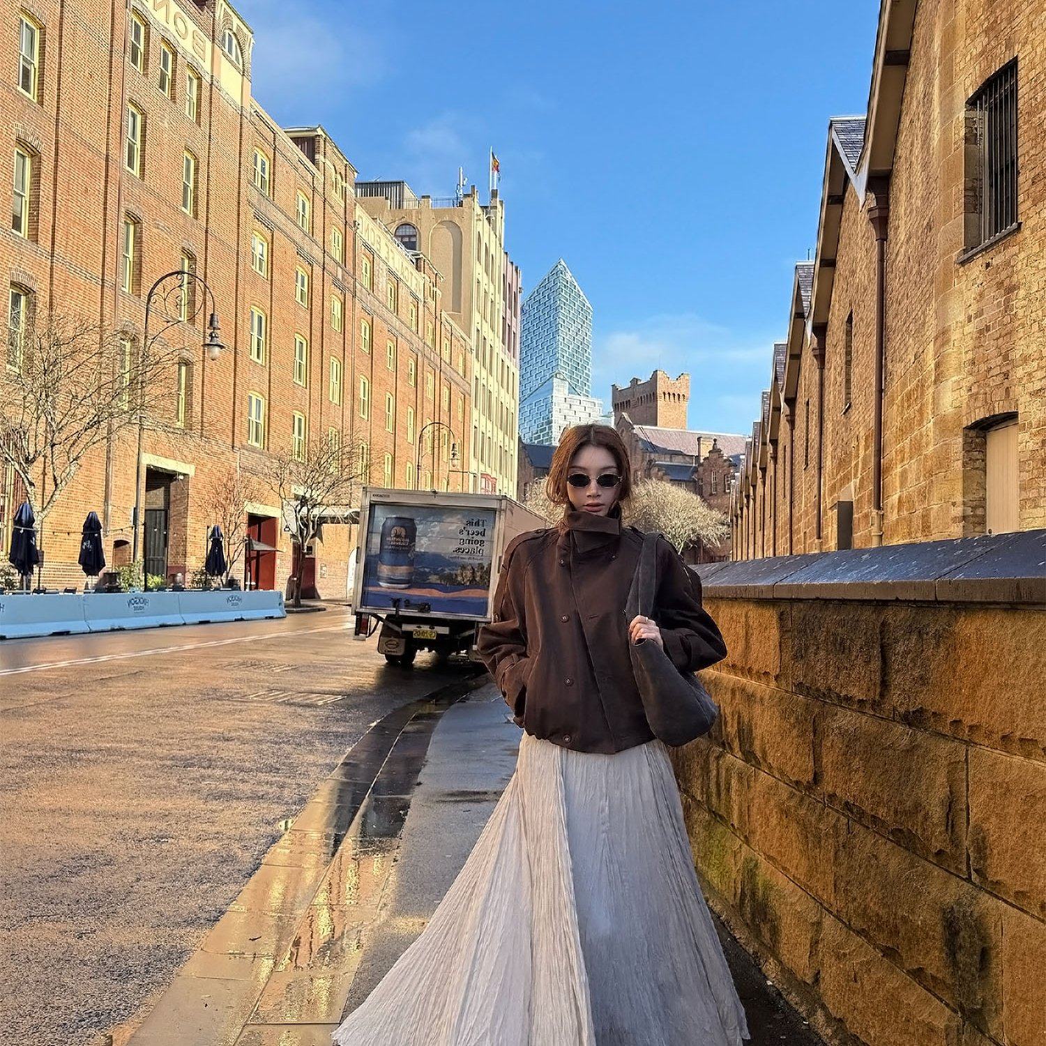 重工侘寂风压褶垂感不规则中长款半身裙女秋季打底裙子