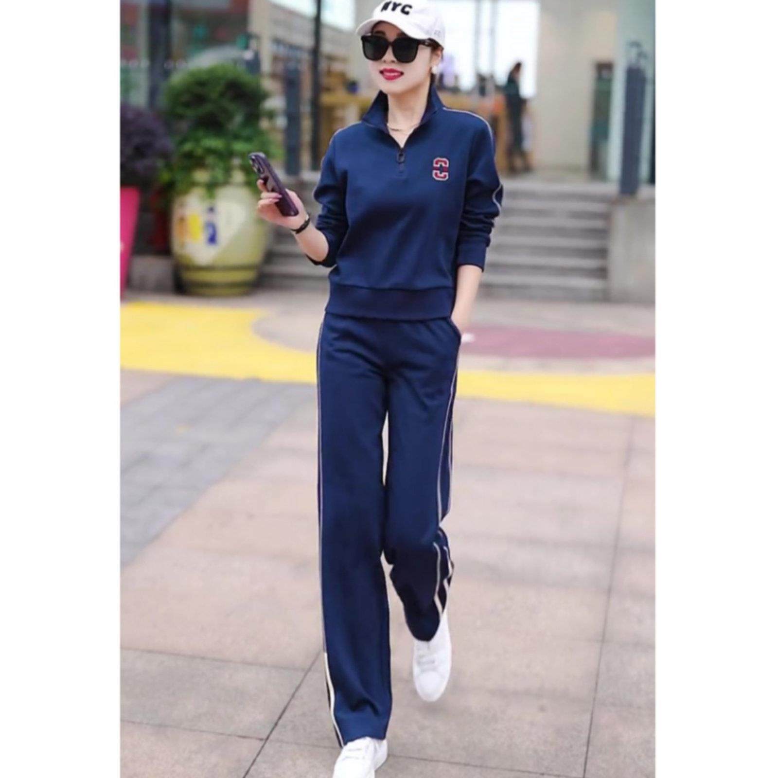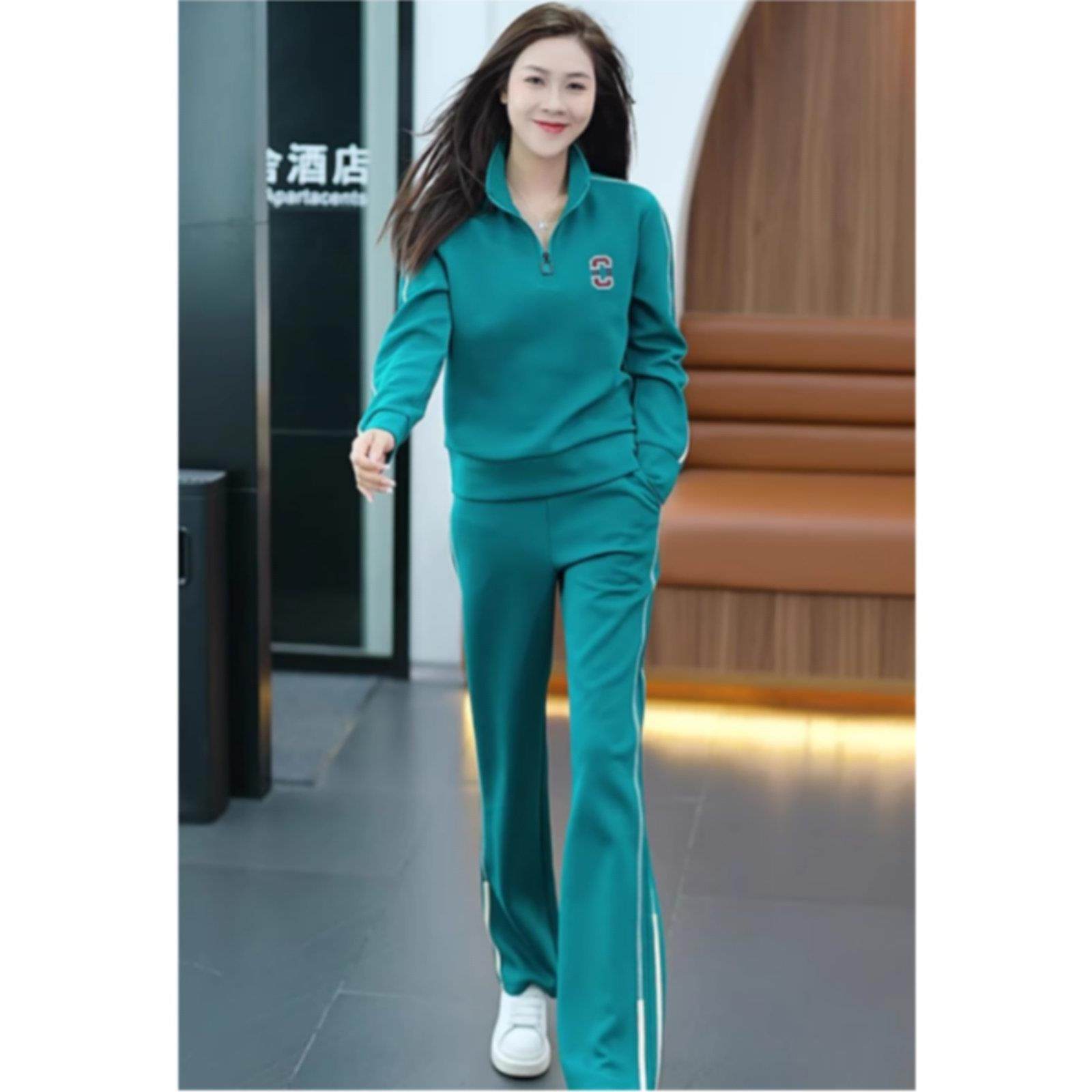 首页> 女装> 白色休闲运动服套装女2025秋季新款洋气减龄立领卫衣阔腿裤两件套