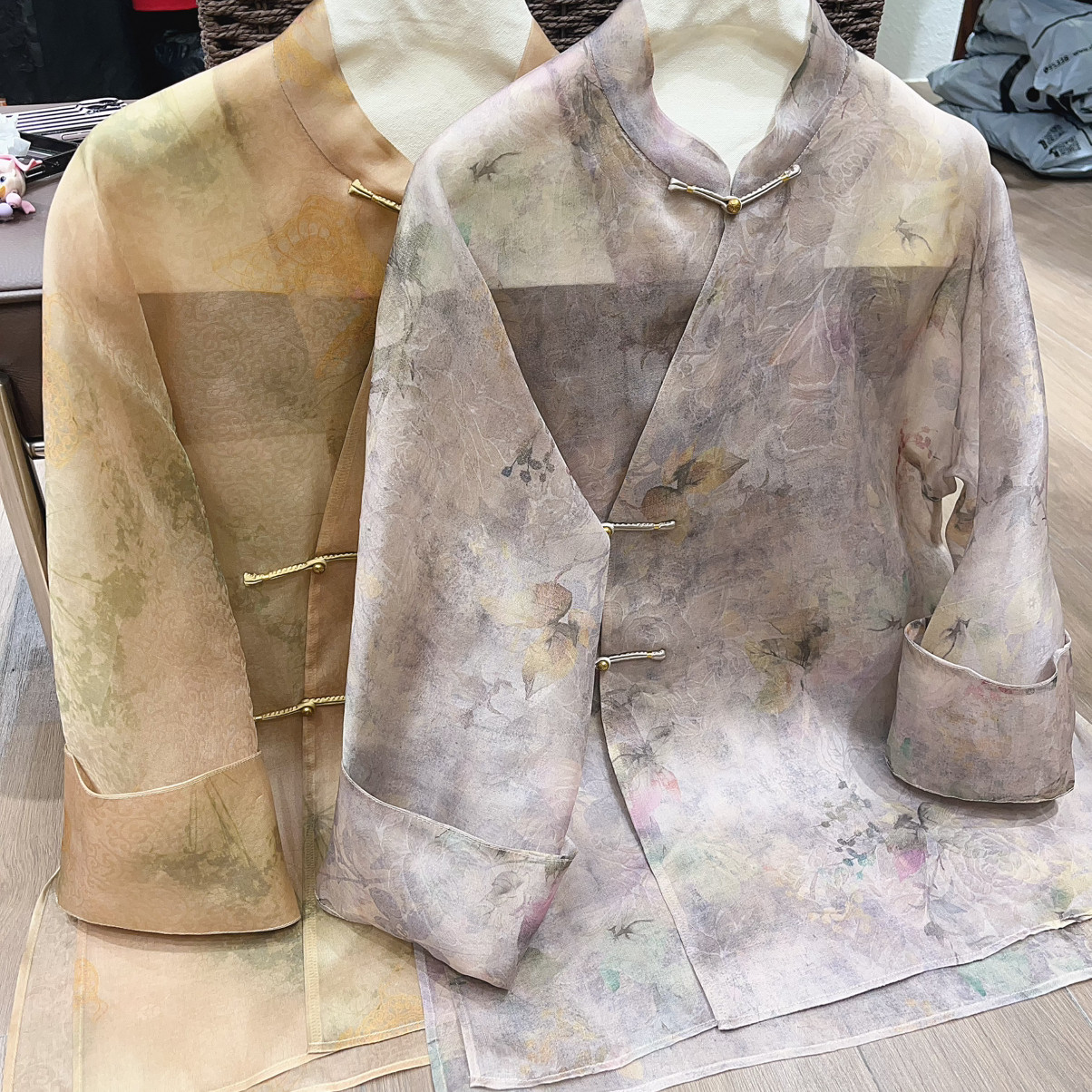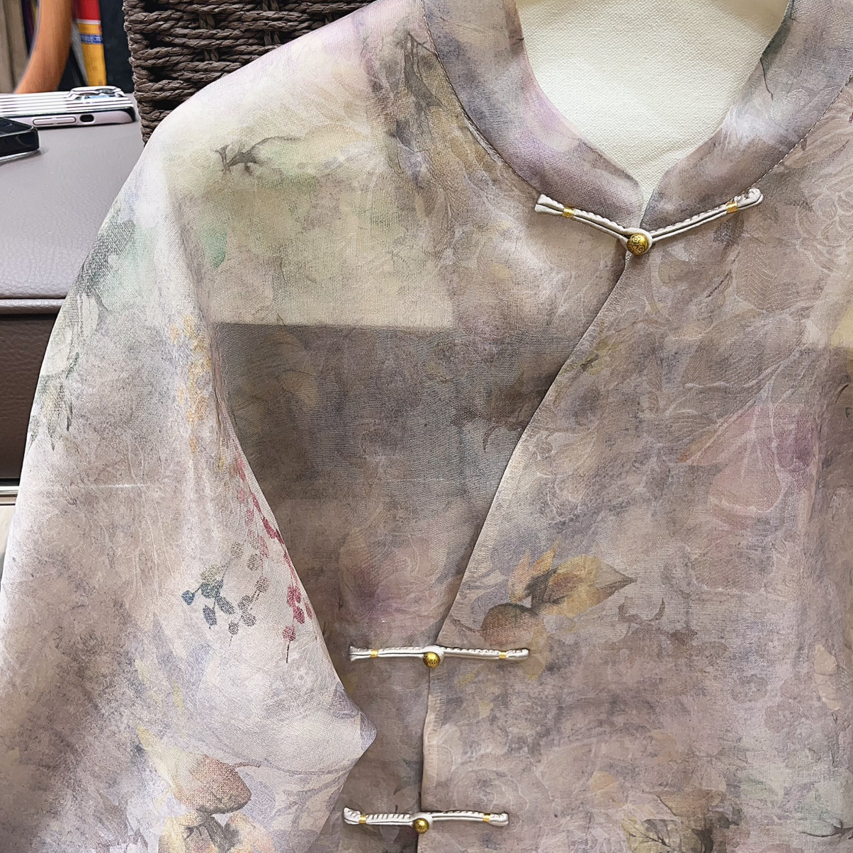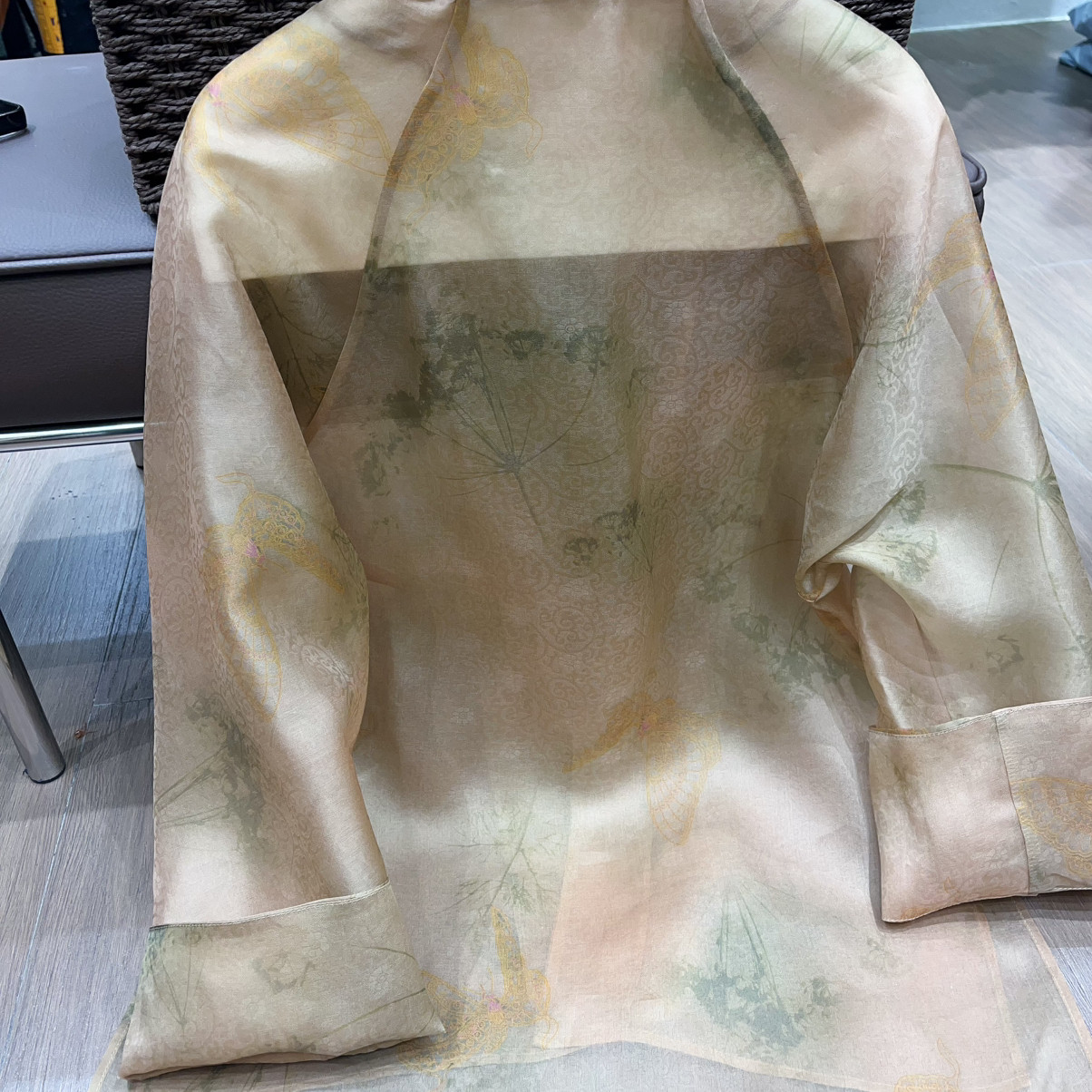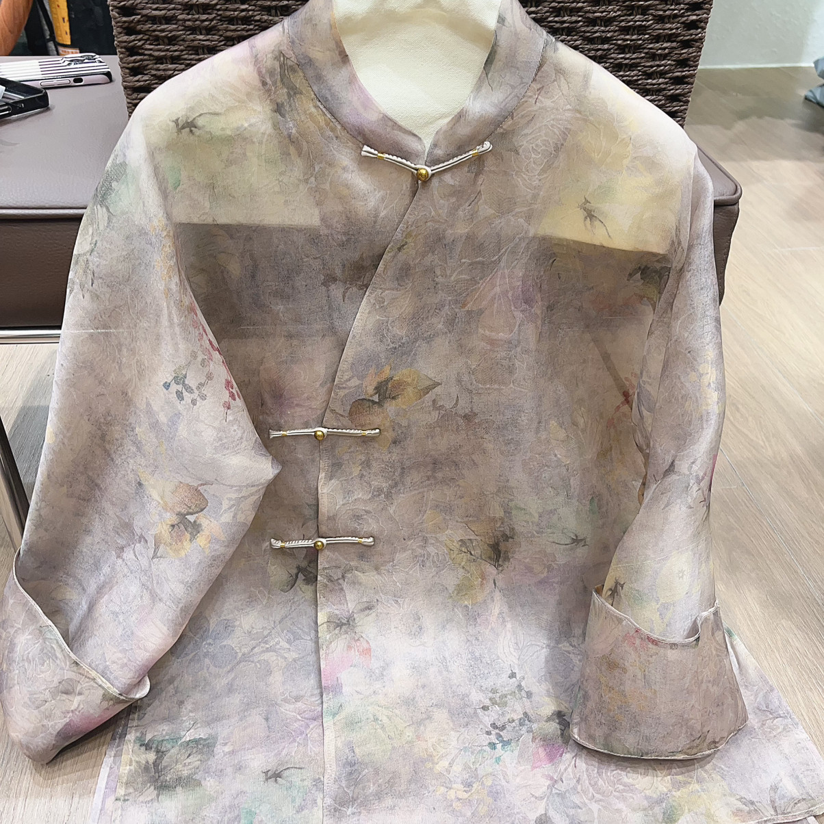 26年早春!桑蚕丝欧根纱炒色提花新中式小衫