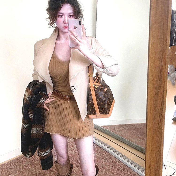 首页> 女装> 韩系复古慵懒松弛感气质巴恩风杏色立领短外套+连衣裙套装女秋季