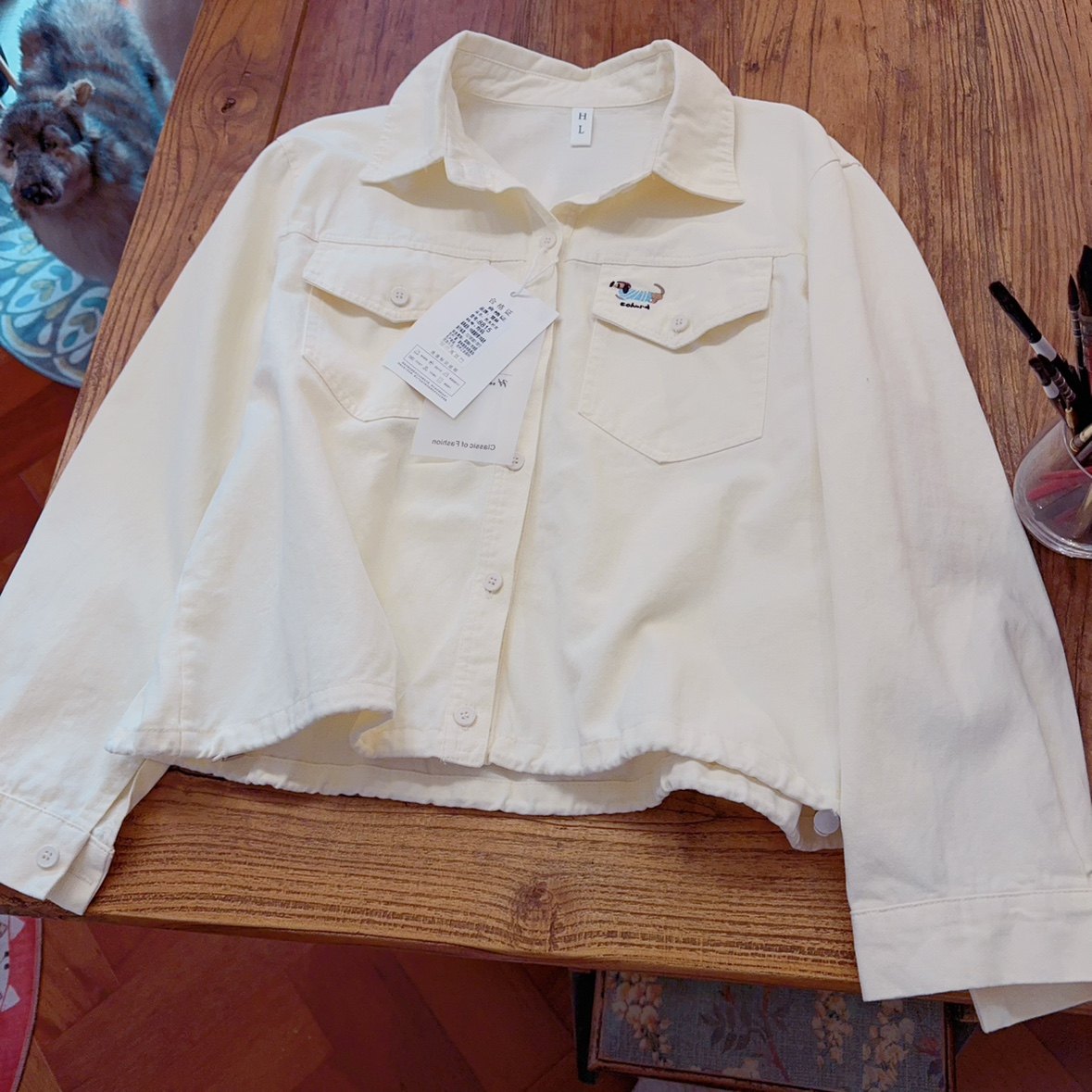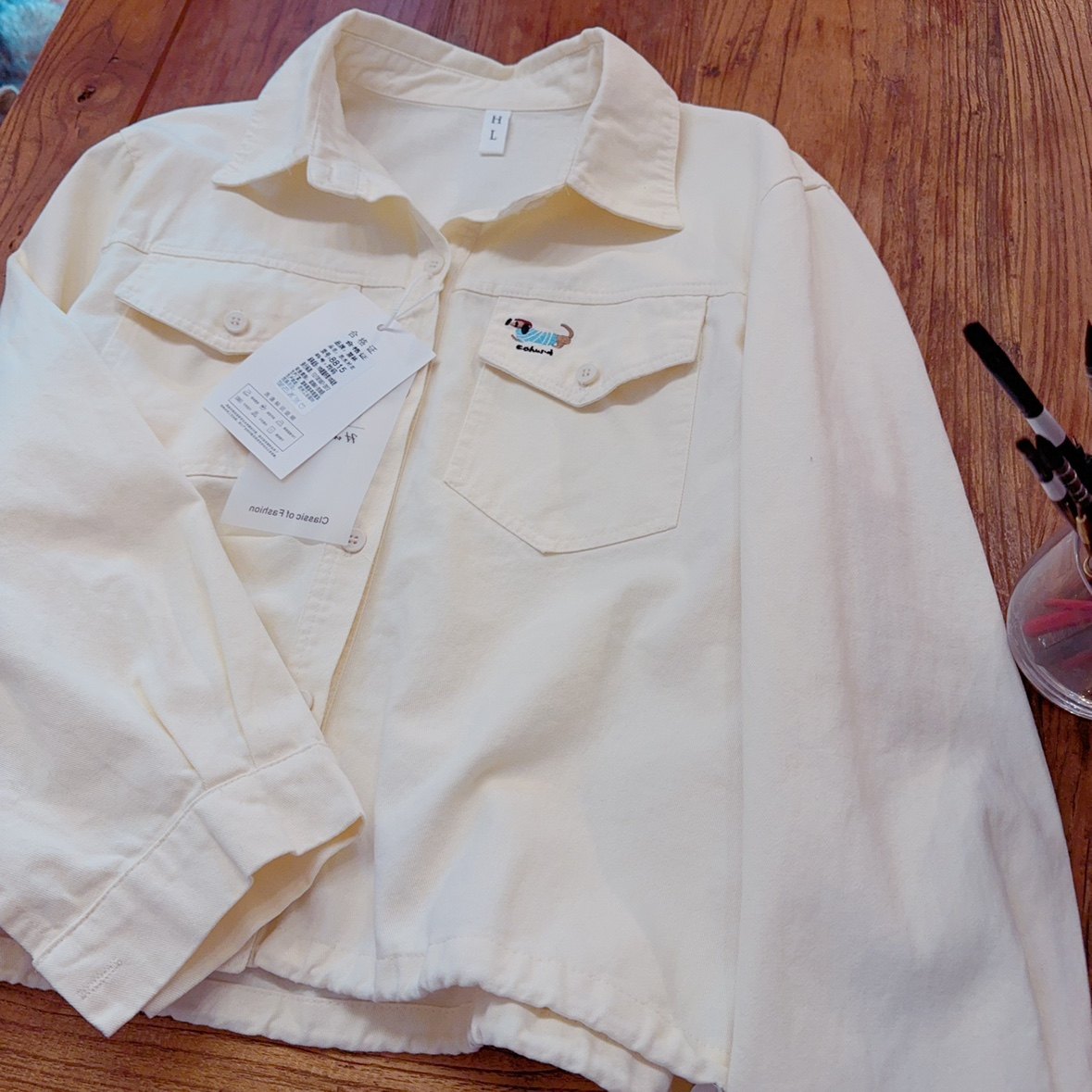 高品质 下摆可调节 小狗刺绣 可爱学院风 奶杏色长袖衬衫短外套