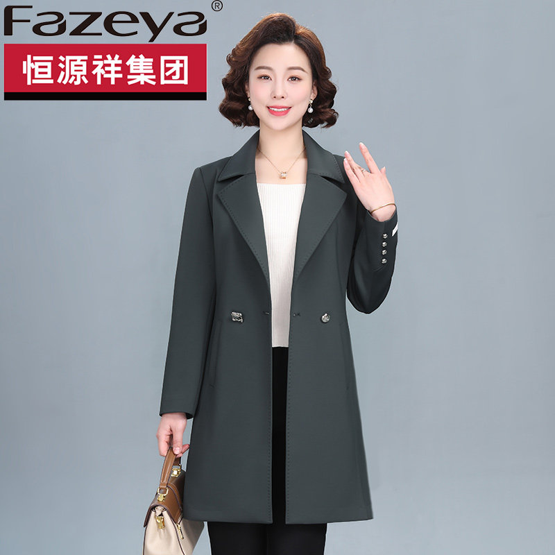 首页> 女装> 恒源祥集团彩羊中老年女装高贵外套春秋季中长款妈妈气质修身风衣