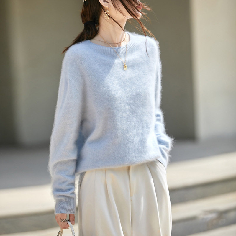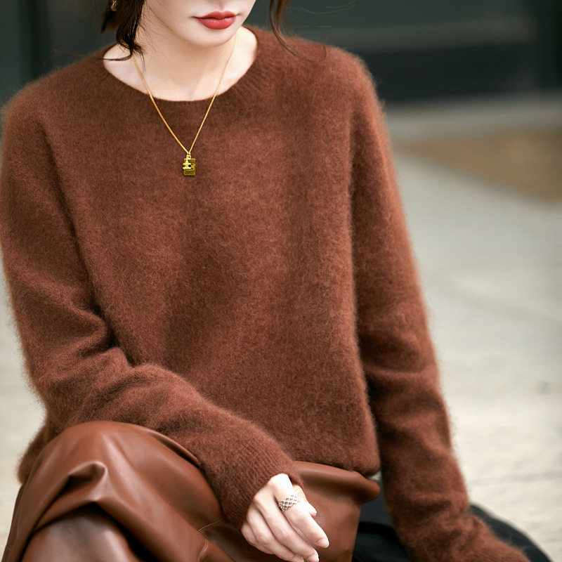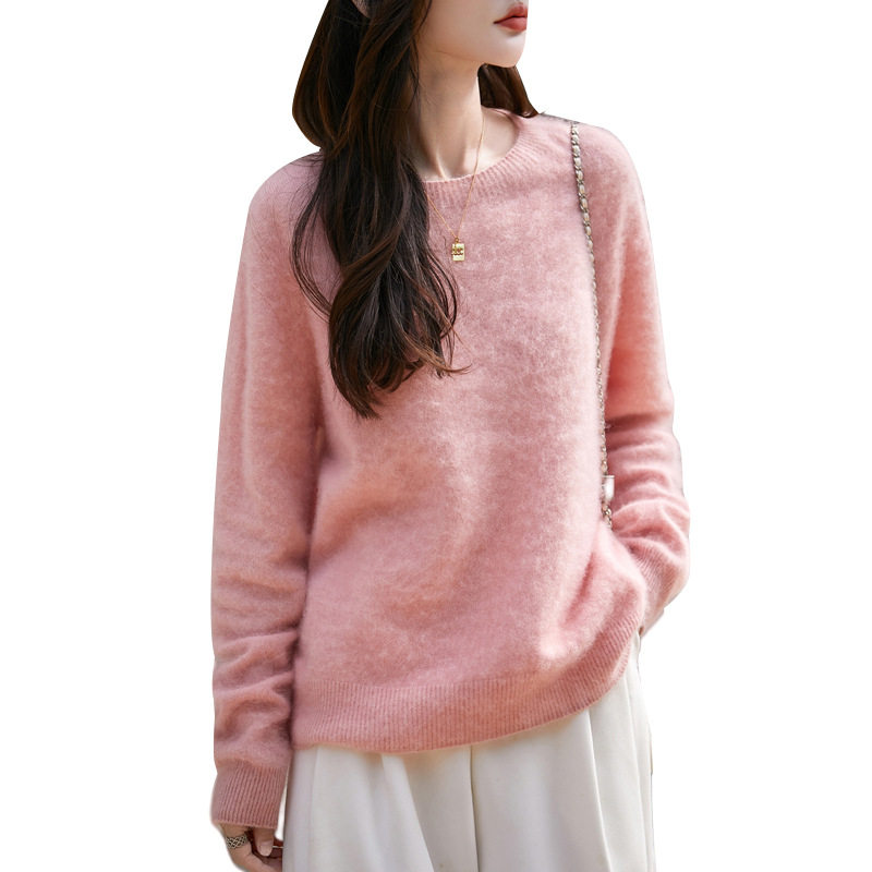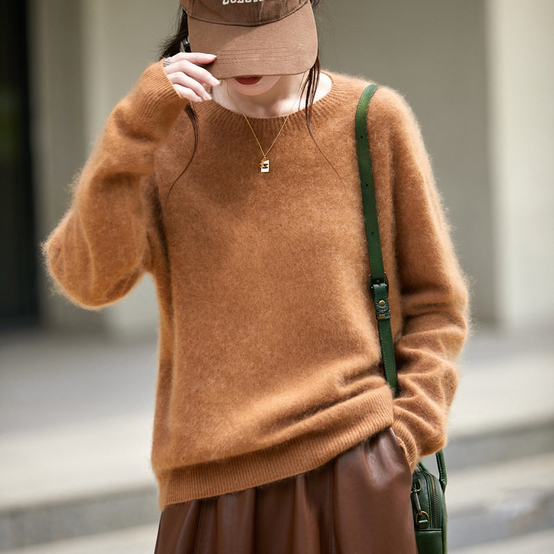 羊毛衫秋冬圆领拉毛羊毛衫女针织衫气质宽松打底毛衣上衣感