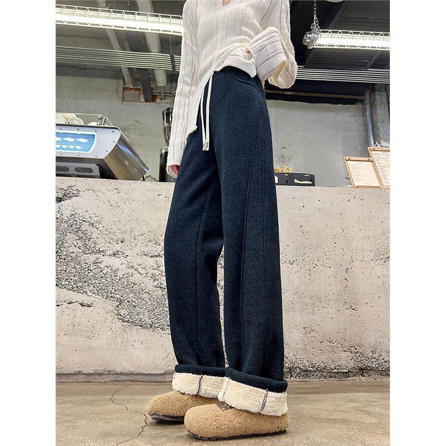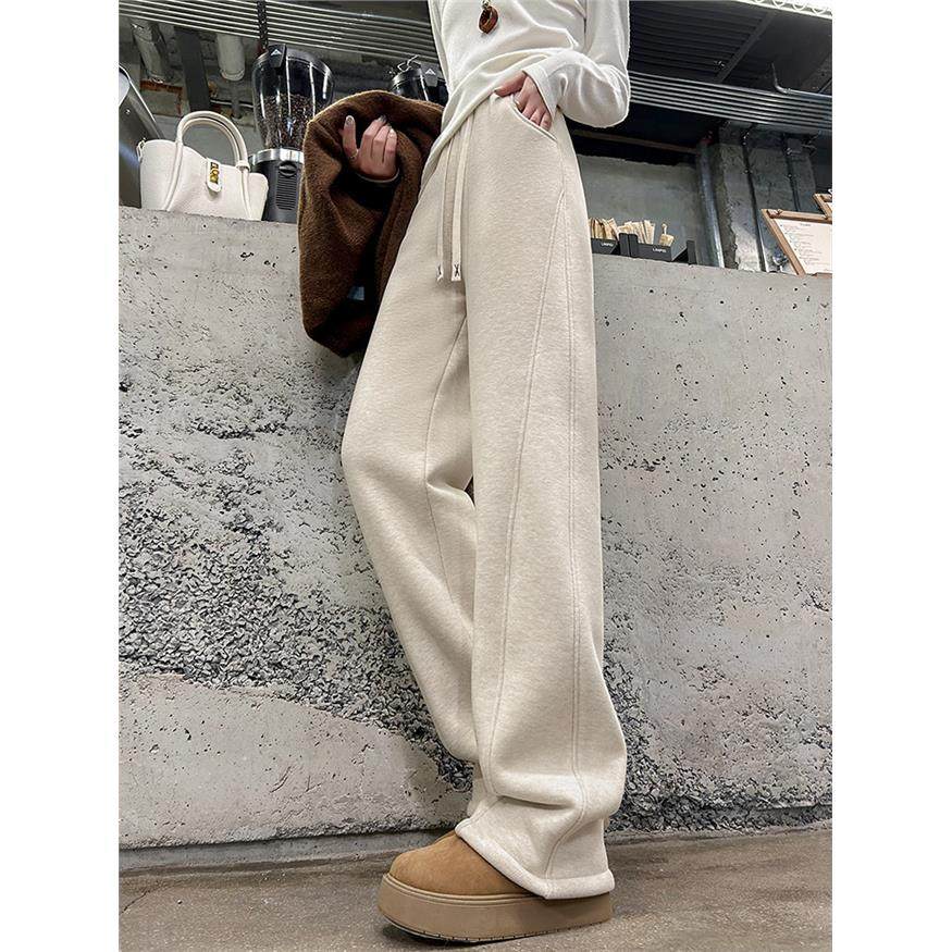 加绒毛呢阔腿裤女冬季2025新款高个子秋冬直筒棉裤白色滑雪防寒裤