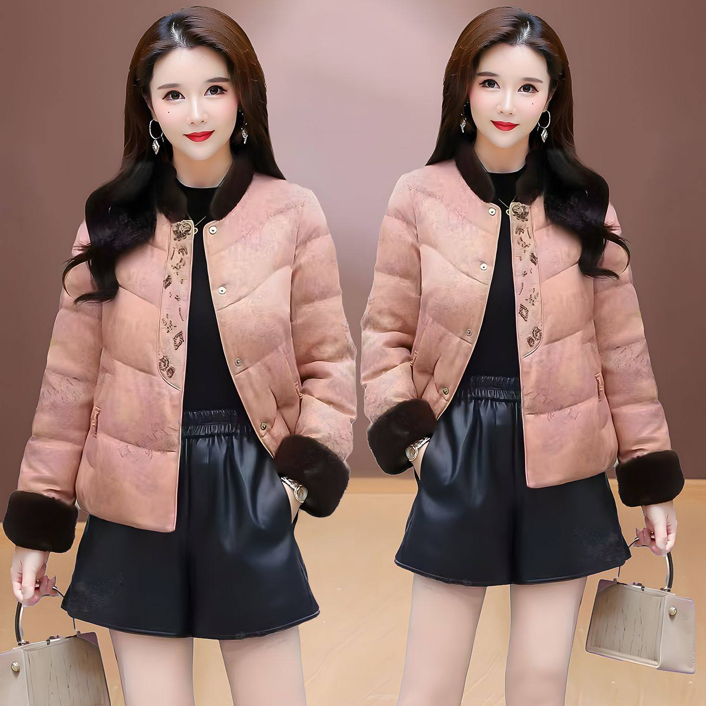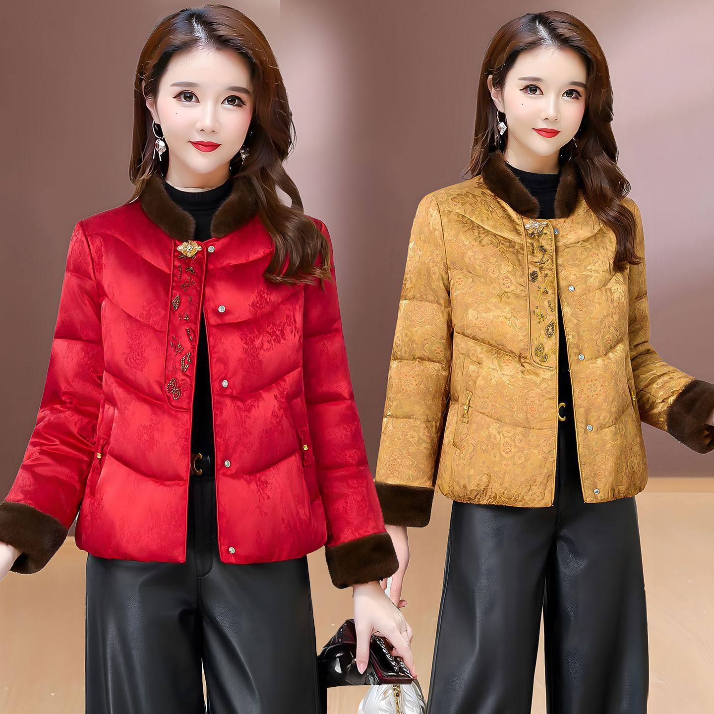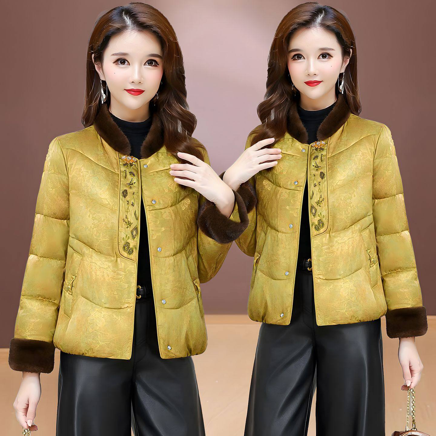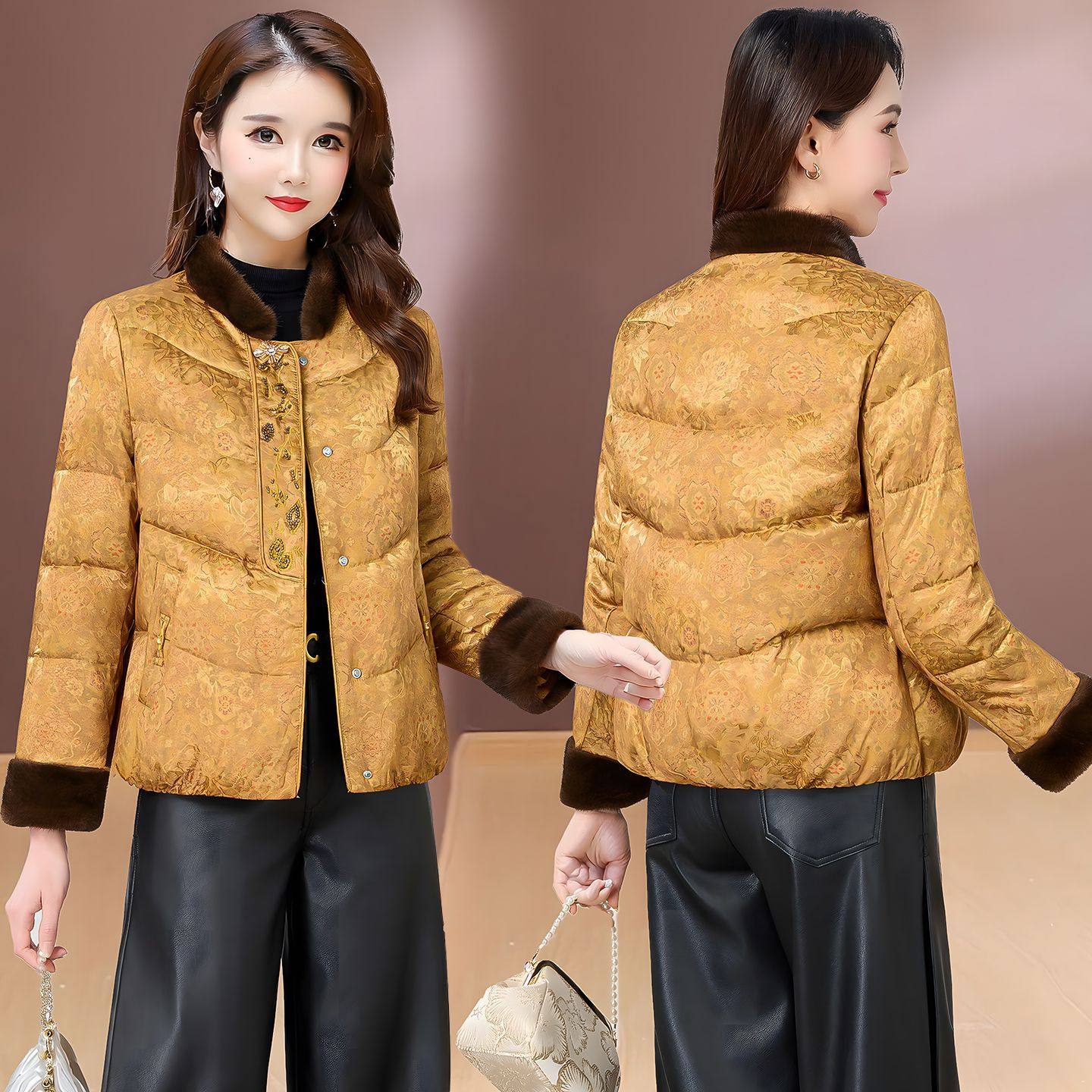 新中式风毛领提花短款棉衣女2025新款妈妈冬季单排扣洋气保暖棉袄