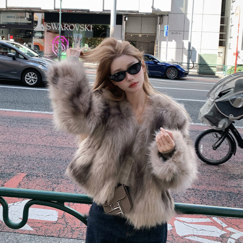 COOLLINE林子熙 财阀女 进口贵气千金风时髦皮草短外套毛毛上衣
