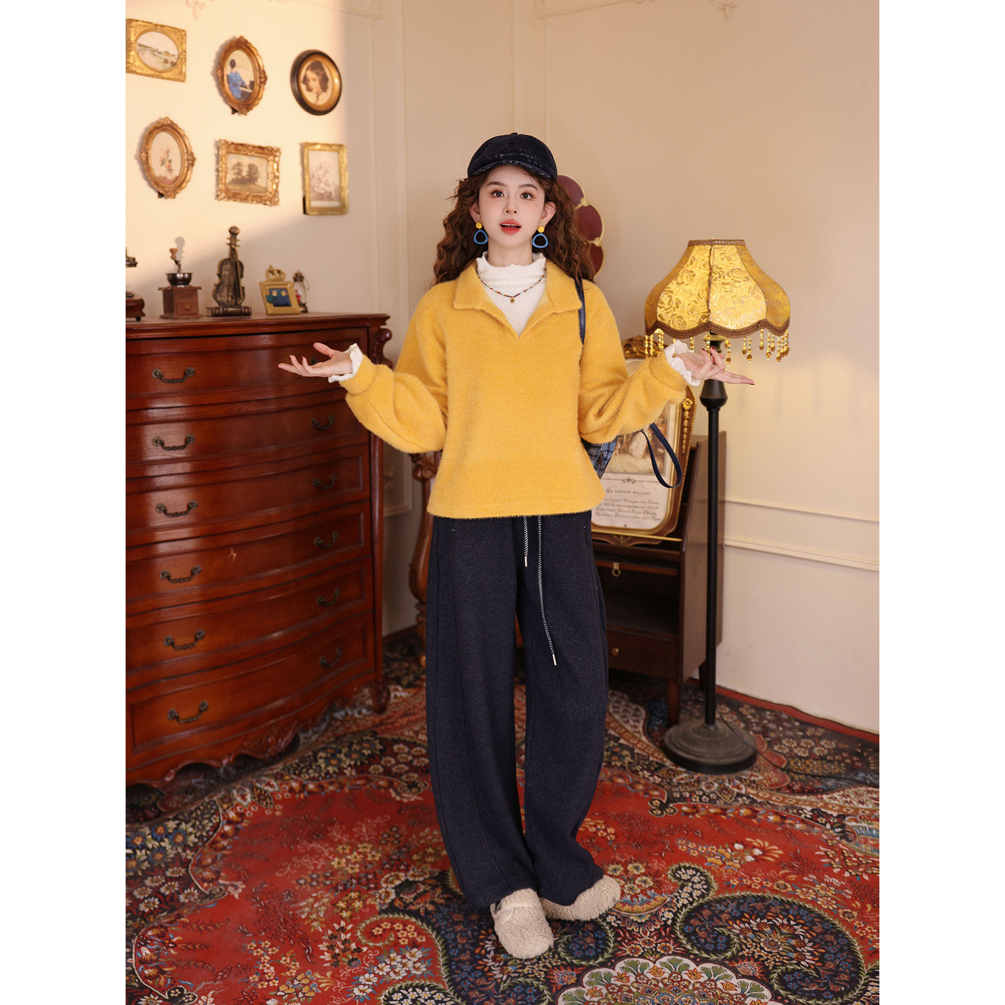 陈佳洁【落日孤舟】长袖卫衣女款加厚冬休闲宽松设计感假两件上衣