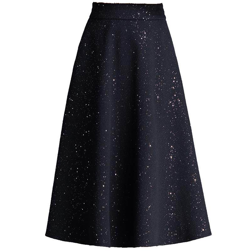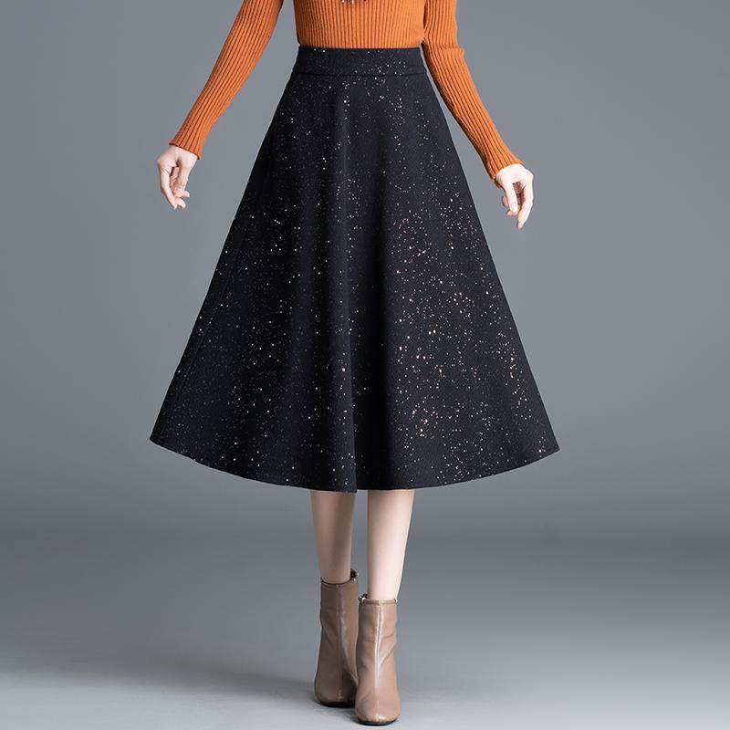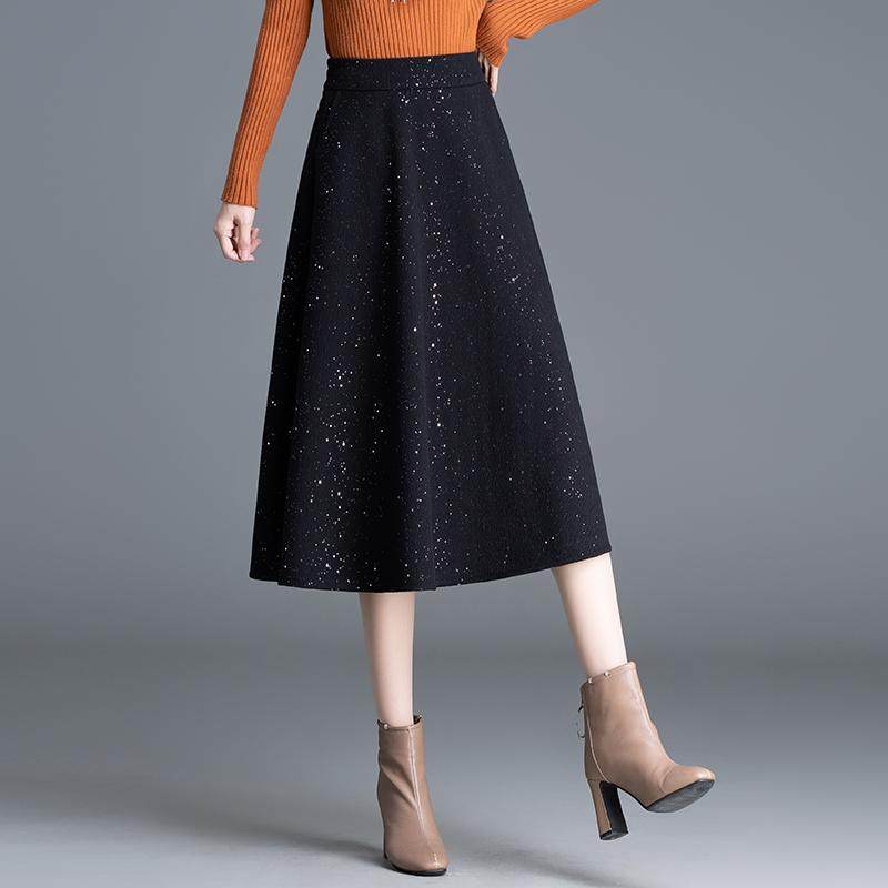 亮片呢子半身裙女秋冬季新款高腰中长款显瘦遮肉A字大摆伞裙