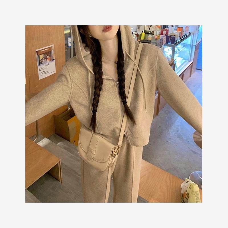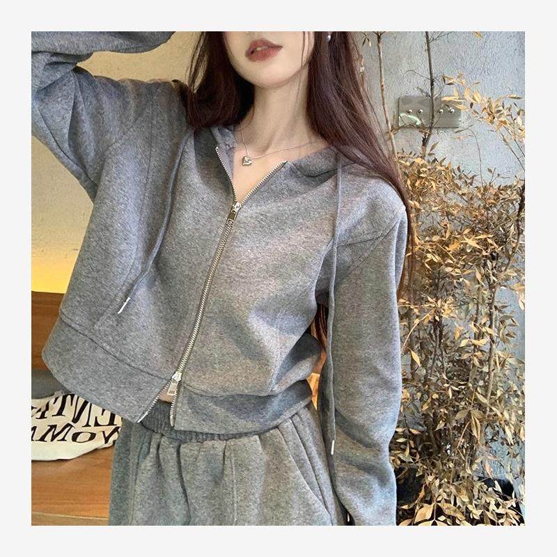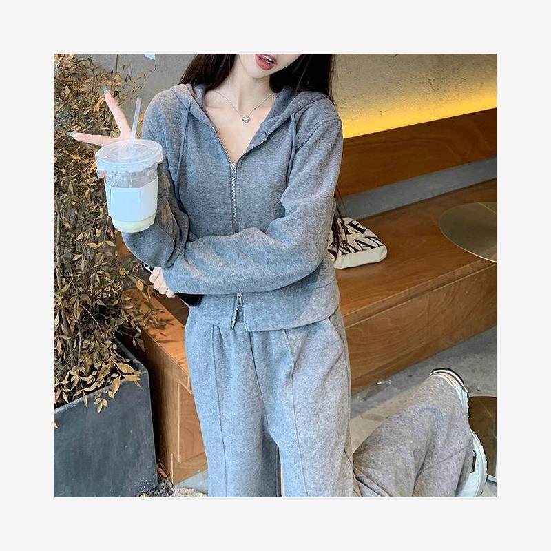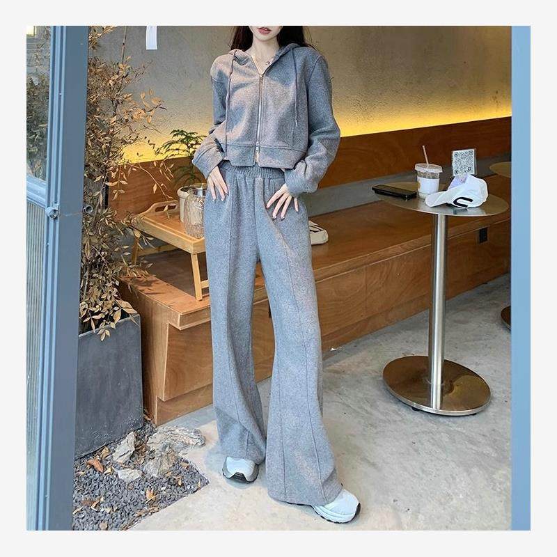 2024春季新款高品质休闲连帽短款休闲长袖卫衣外套阔腿裤长裤套装
