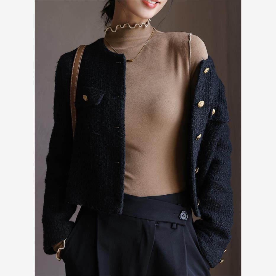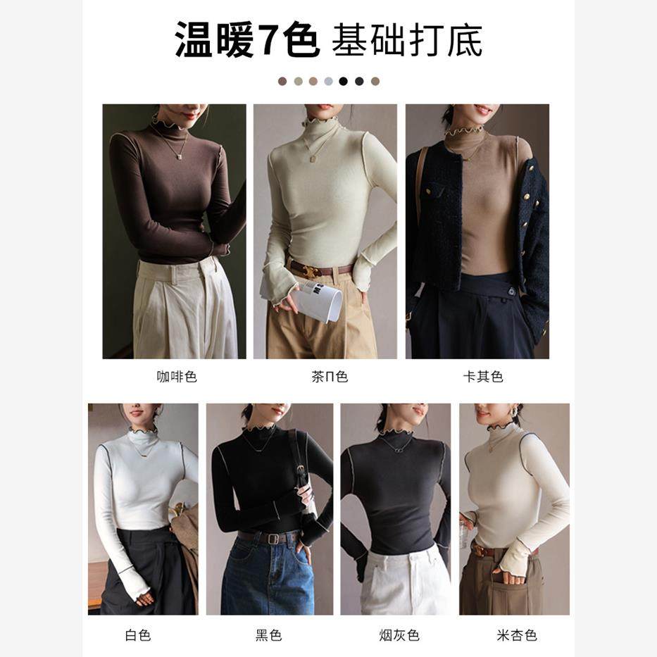 【羊绒蚕丝打底上衣】木耳边半高领德绒打底衫女内搭秋冬季长袖