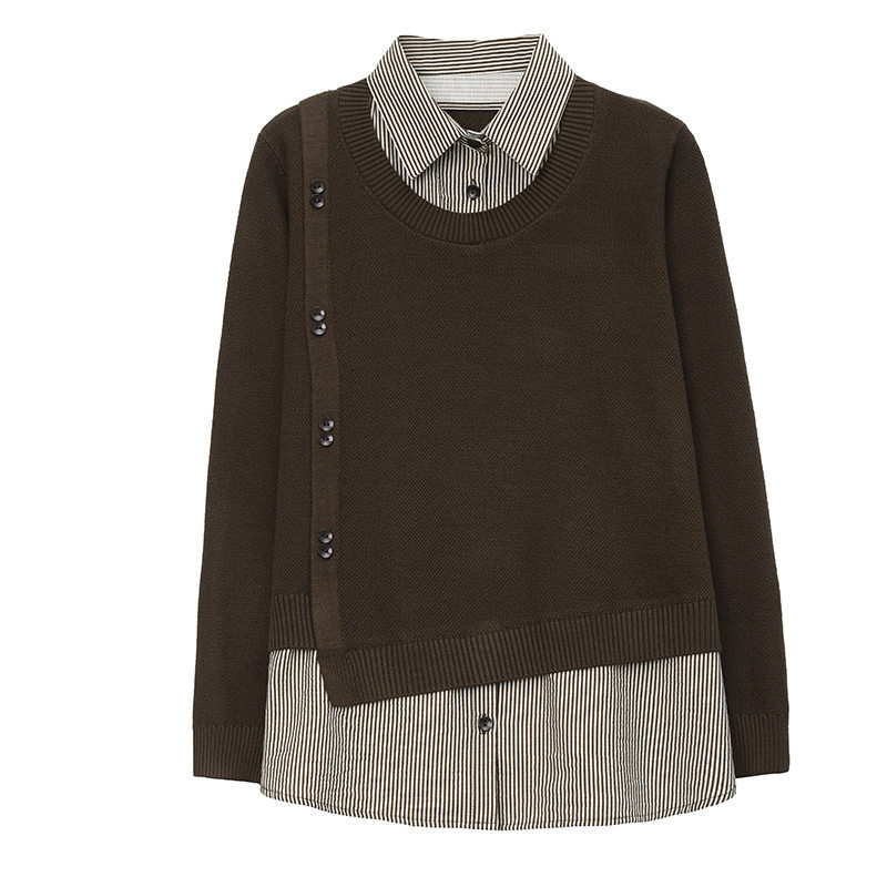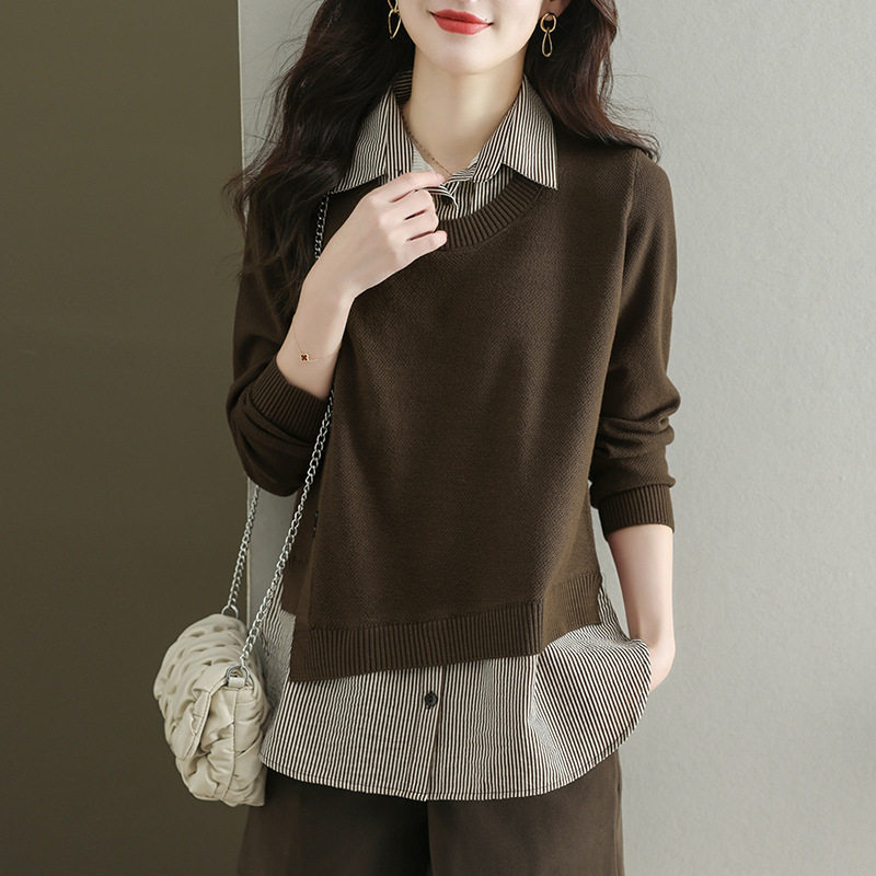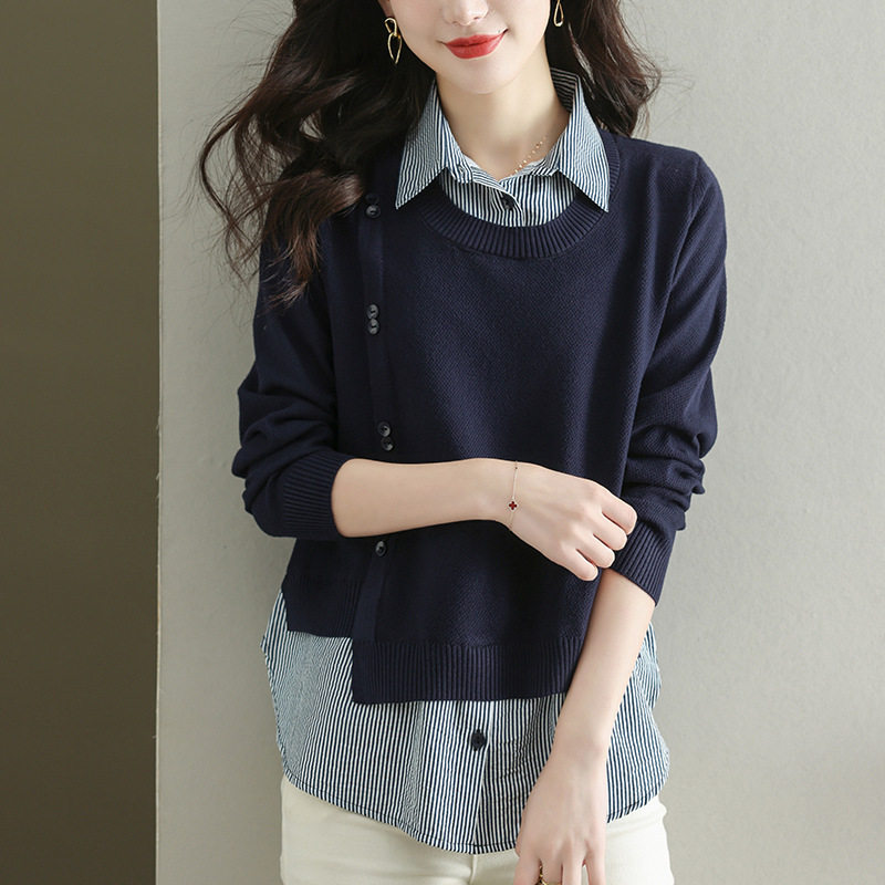 厂家直发假两件针织上衣女衬衫领毛衣2024年春秋装新款洋气小衫女