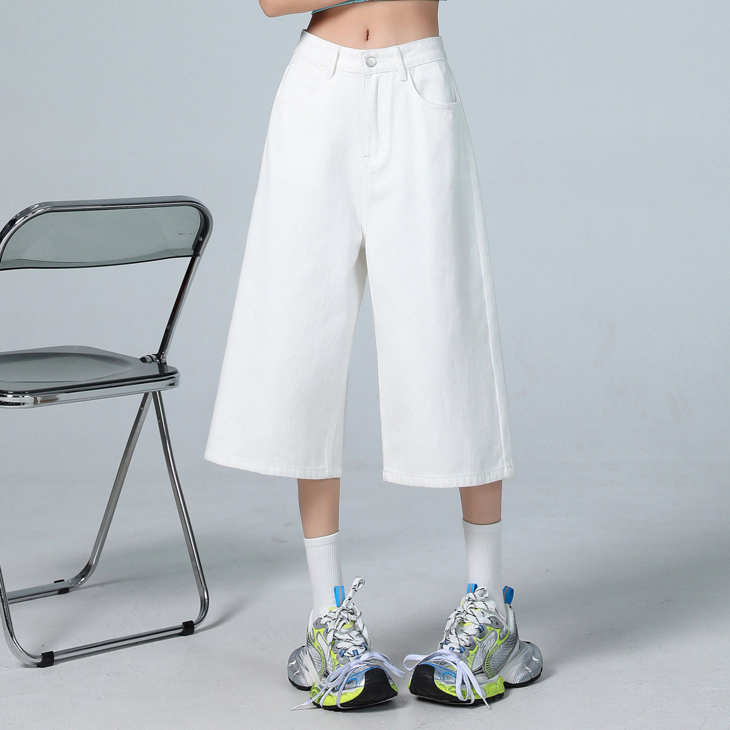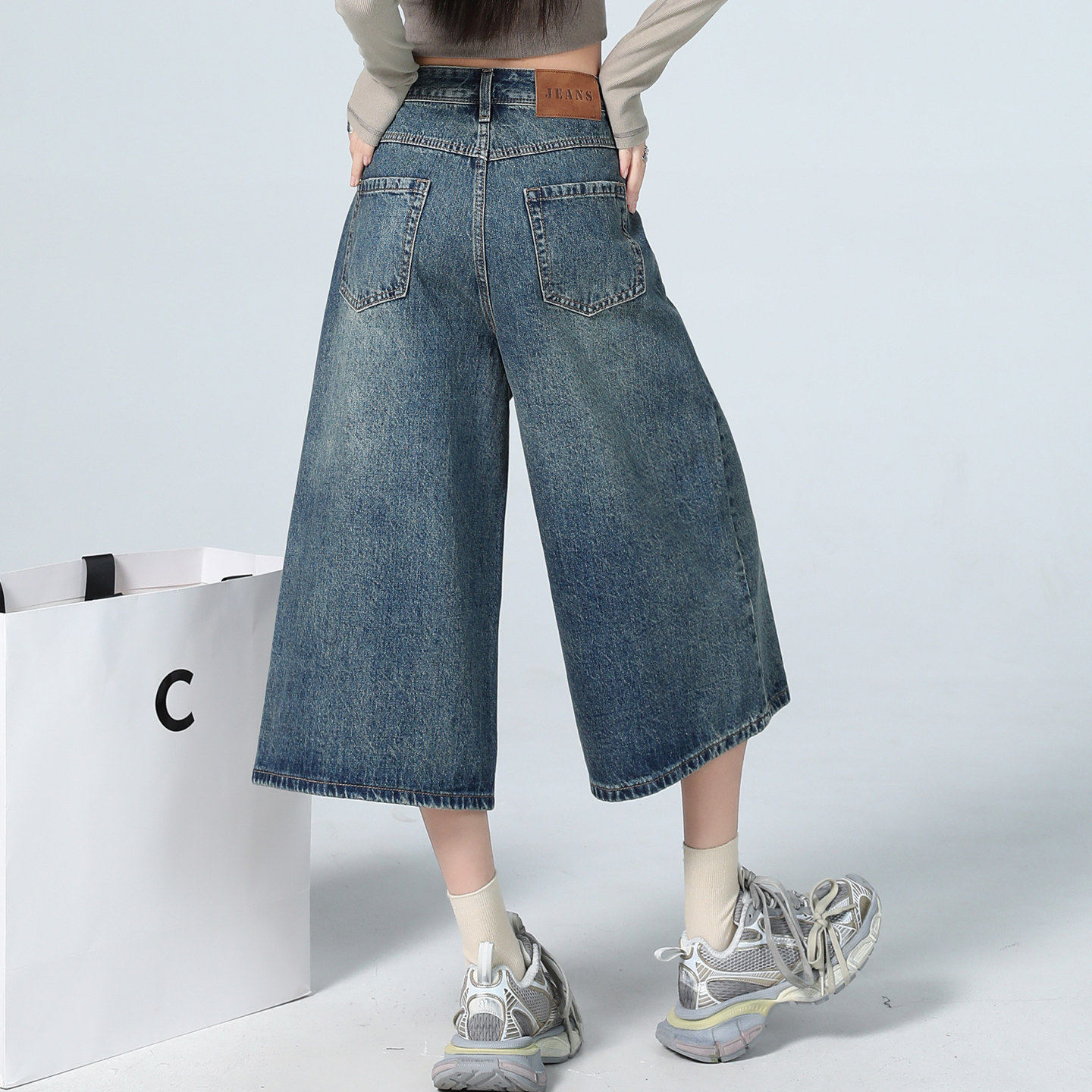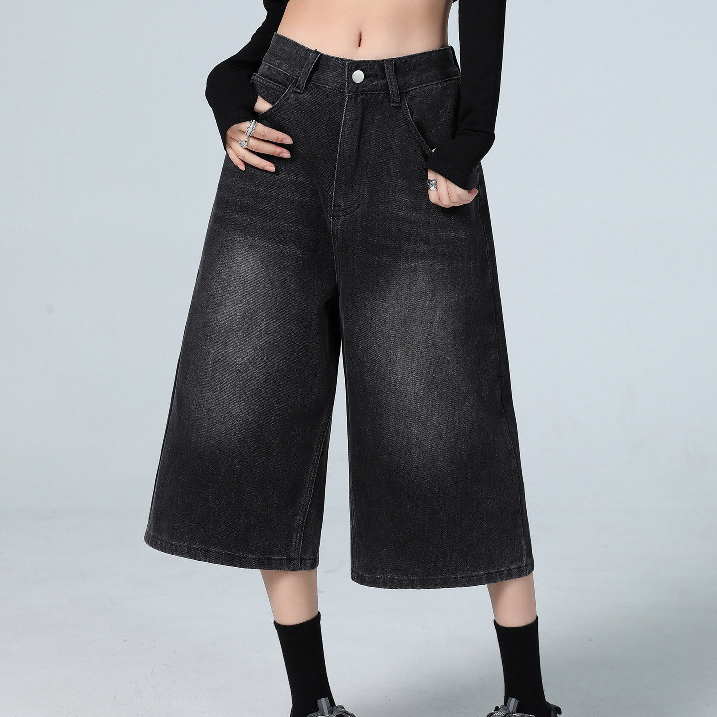美式复古七分牛仔裤女夏季薄款2025新款高腰宽松休闲直筒阔腿中裤