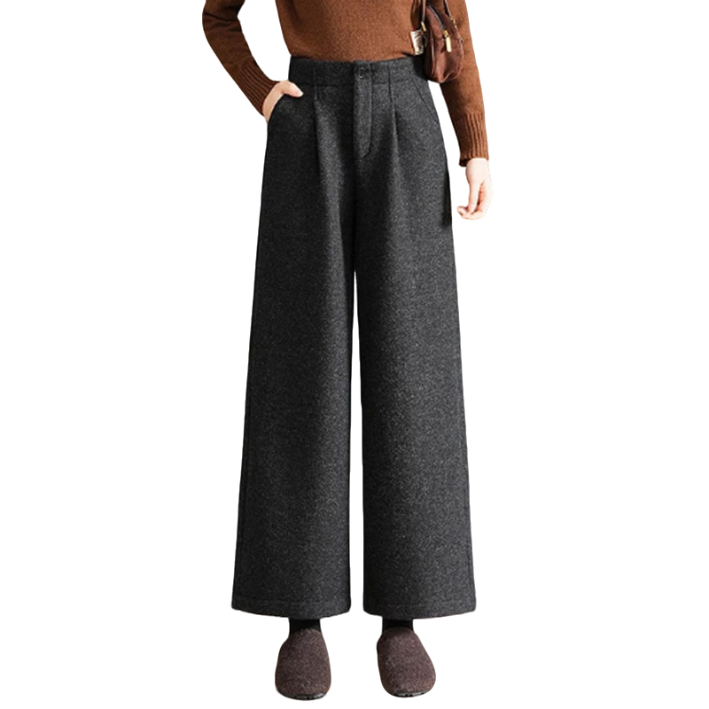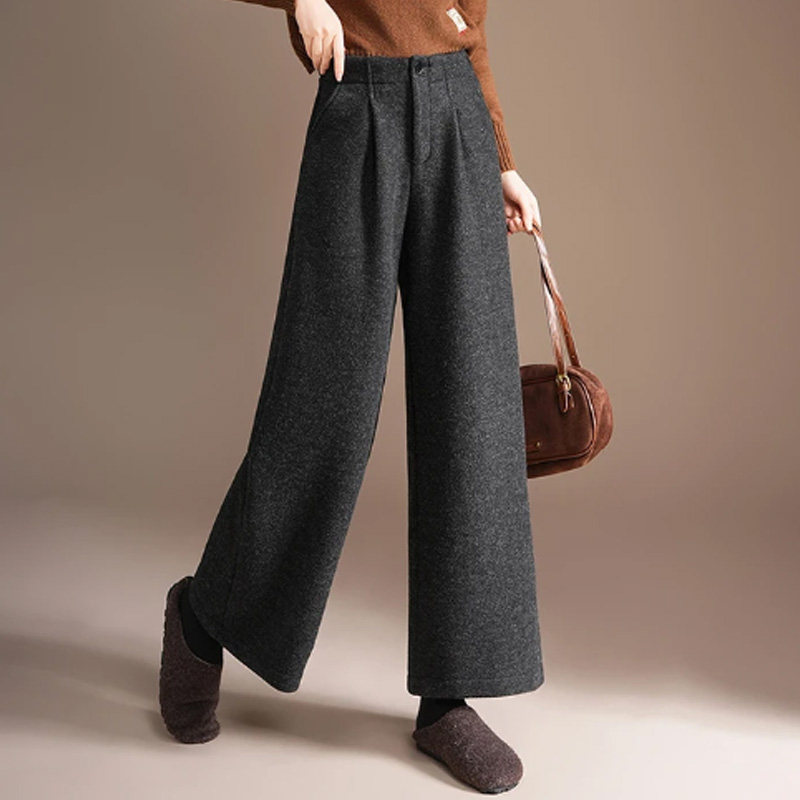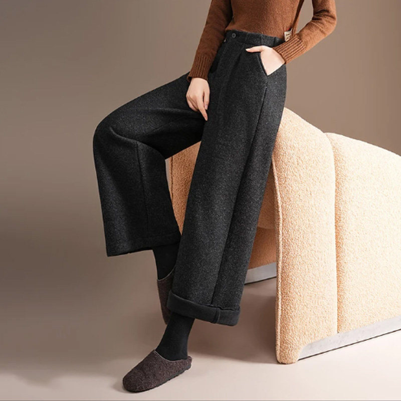 极简风高腰阔腿休闲裤女2025新款冬加绒加厚宽松显瘦小个子九分裤