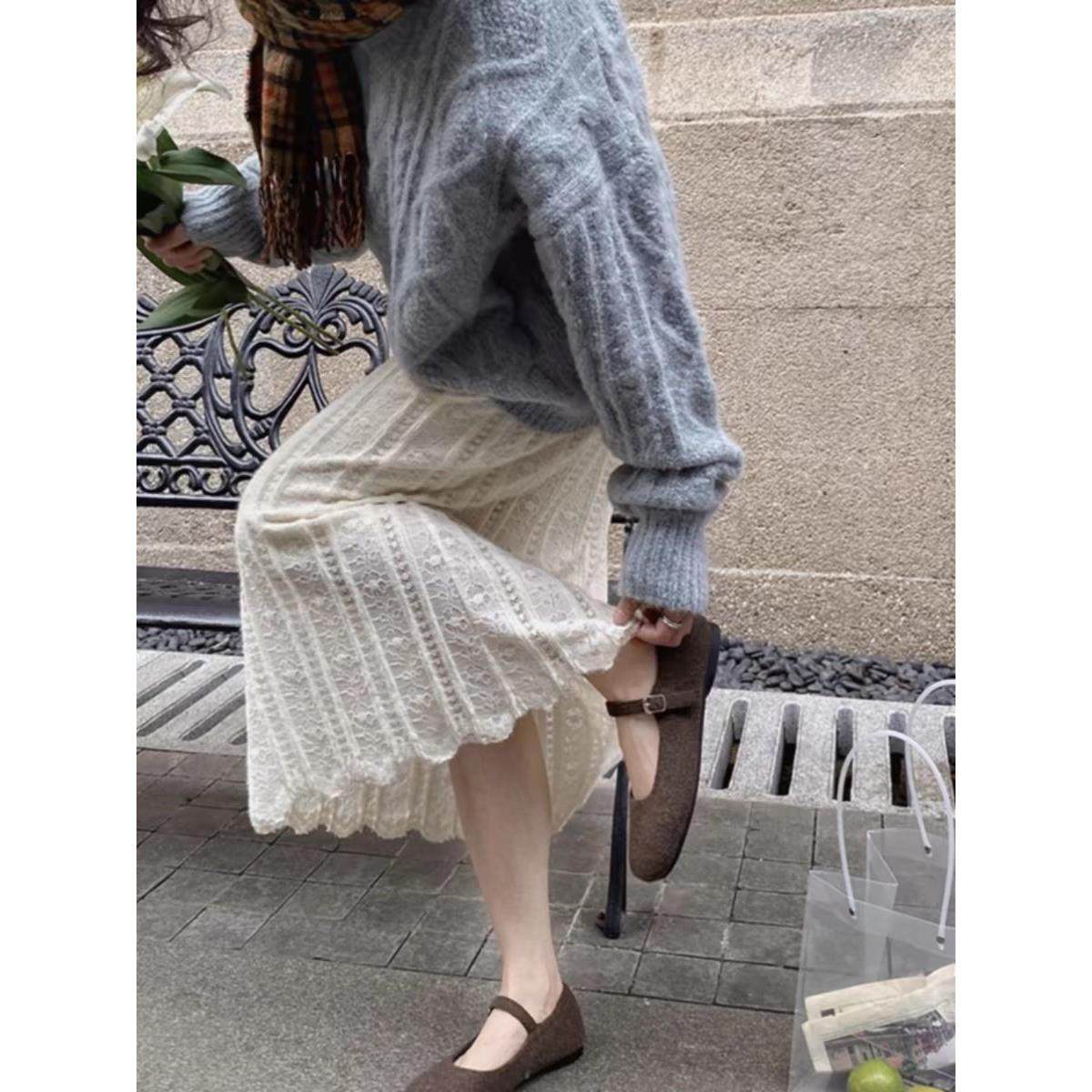 首页> 女装> 法国Rouje Rosella⭐法式蕾丝加绒高腰显瘦半身裙女秋季a字中长裙