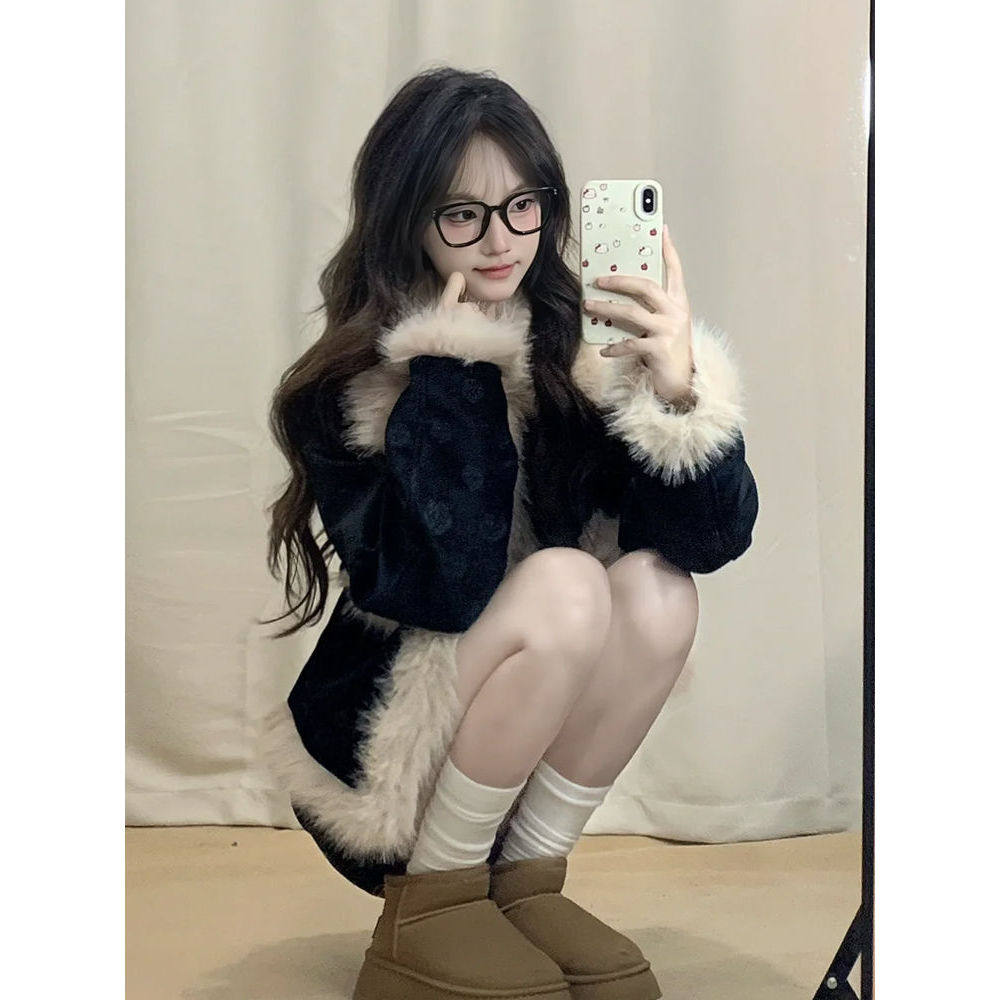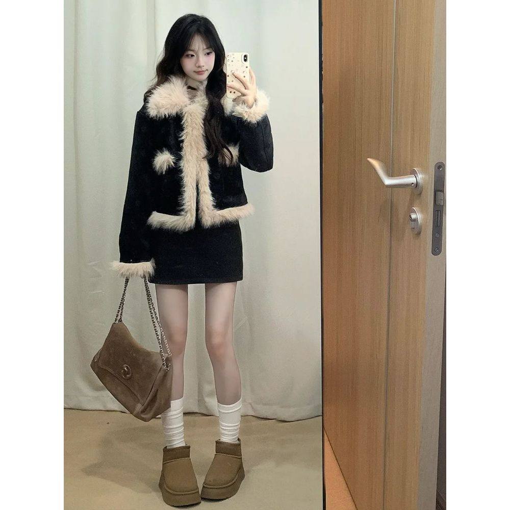 矜贵千金 冬季法式高级感小香毛毛拼接外套美式辣妹半裙显瘦套装