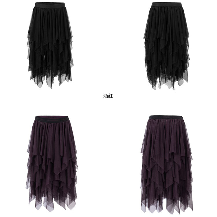 【粉丝专属】紧高腰半身裙不规则A摆中长款网纱裙230539-81028