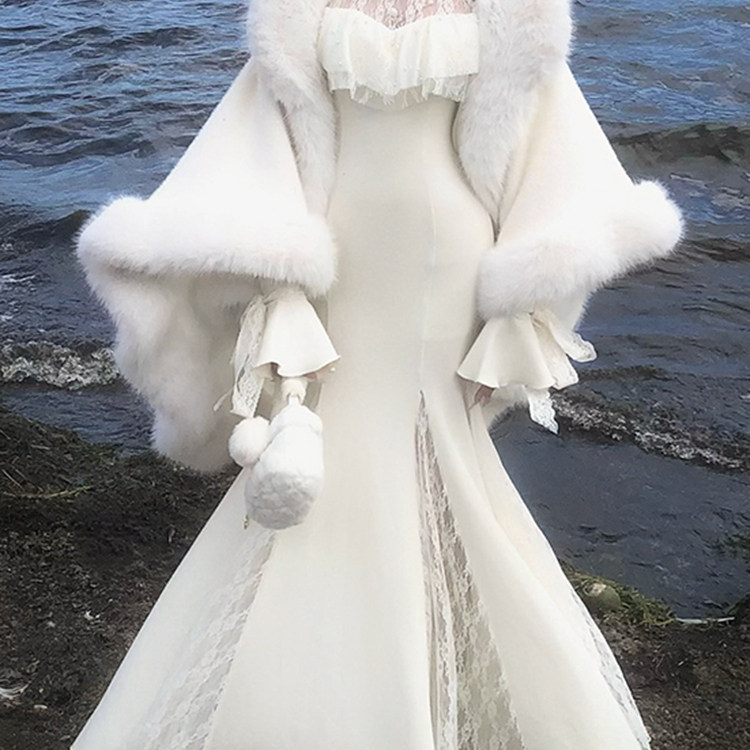 法式富家千金气质套装女冬季收腰显瘦蕾丝拼接连衣裙+斗篷两件套
