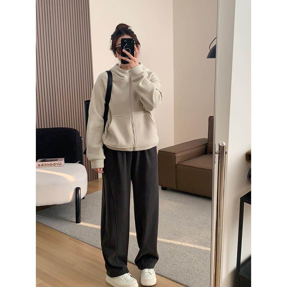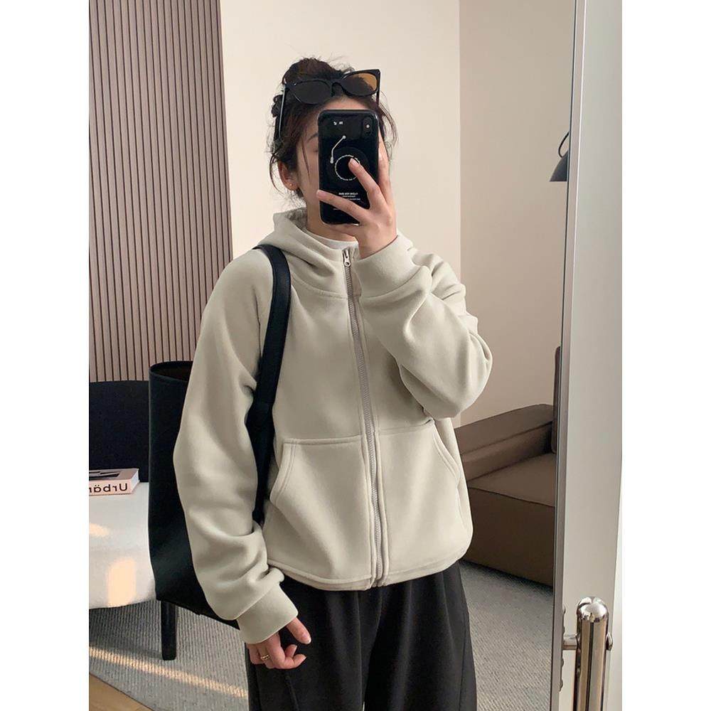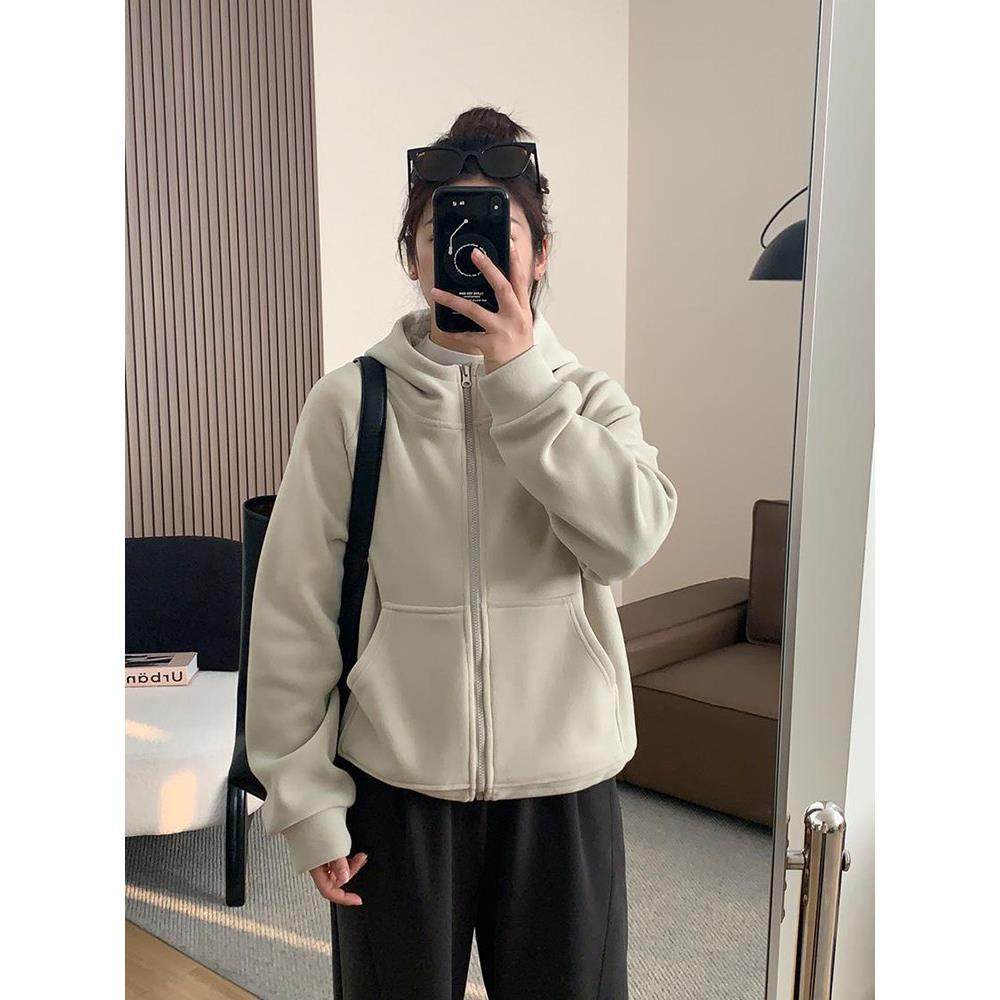 首页> 女装> 欧洲站黑色连帽加厚加绒卫衣外套女2025年秋冬新款拉炼开衫上衣潮