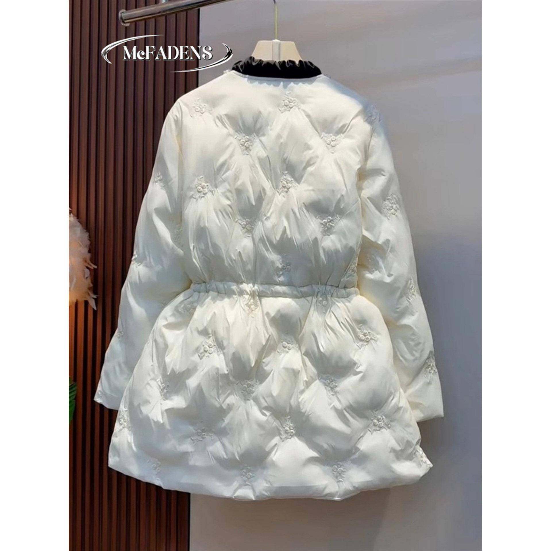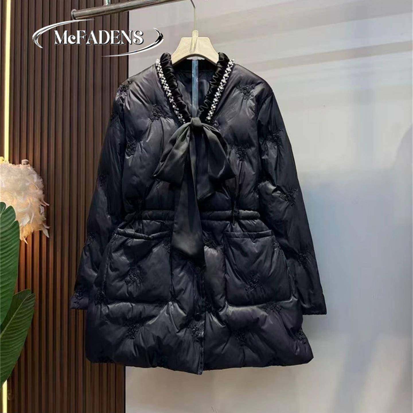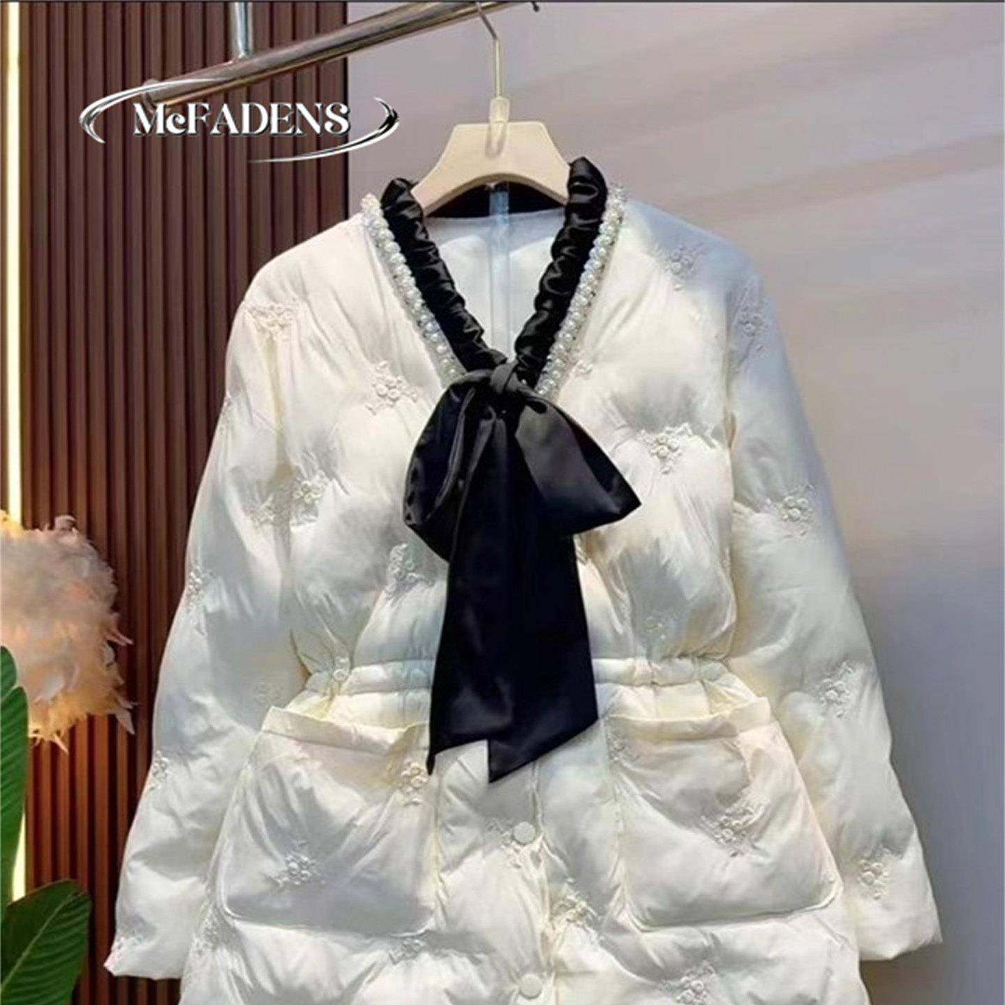 首页> 女装> 香港法式小香风气质V领保暖外套秋冬大码蝴蝶结系带收腰显瘦棉服