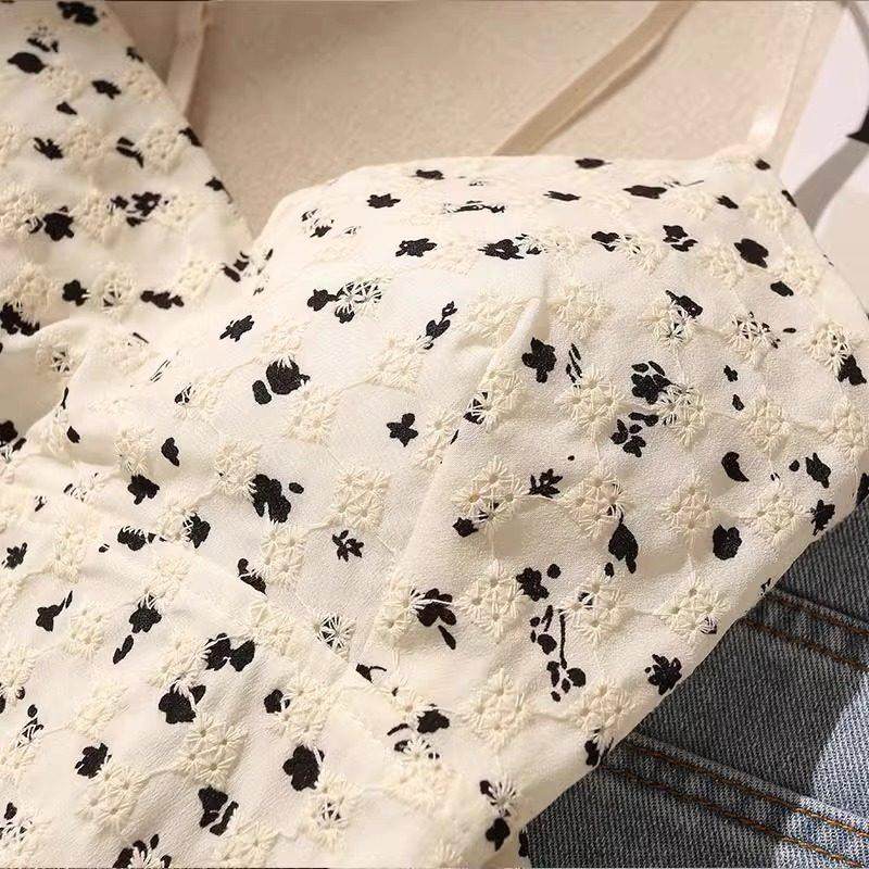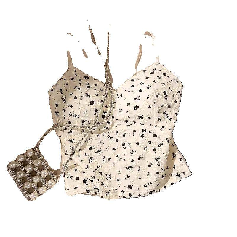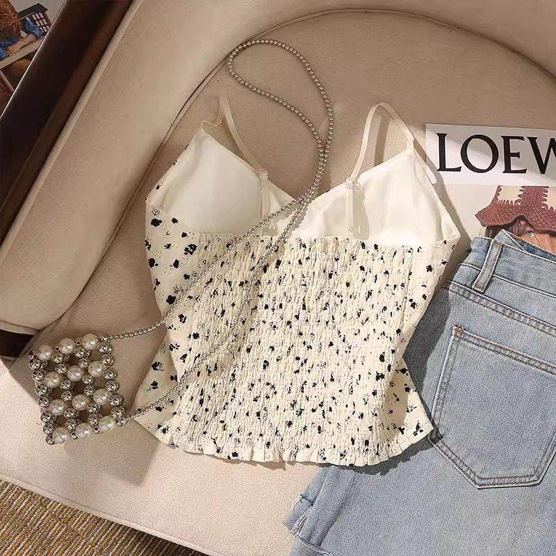 法式碎花吊带小背心女带胸垫V领松紧腰抹胸裹胸南法风西装内搭