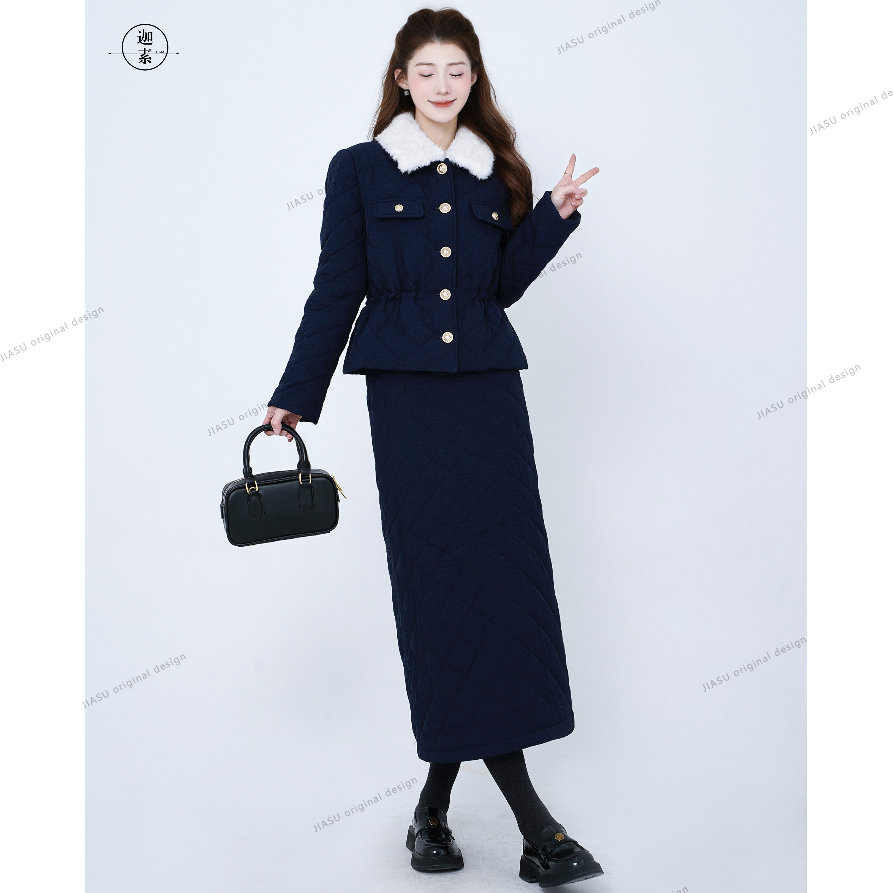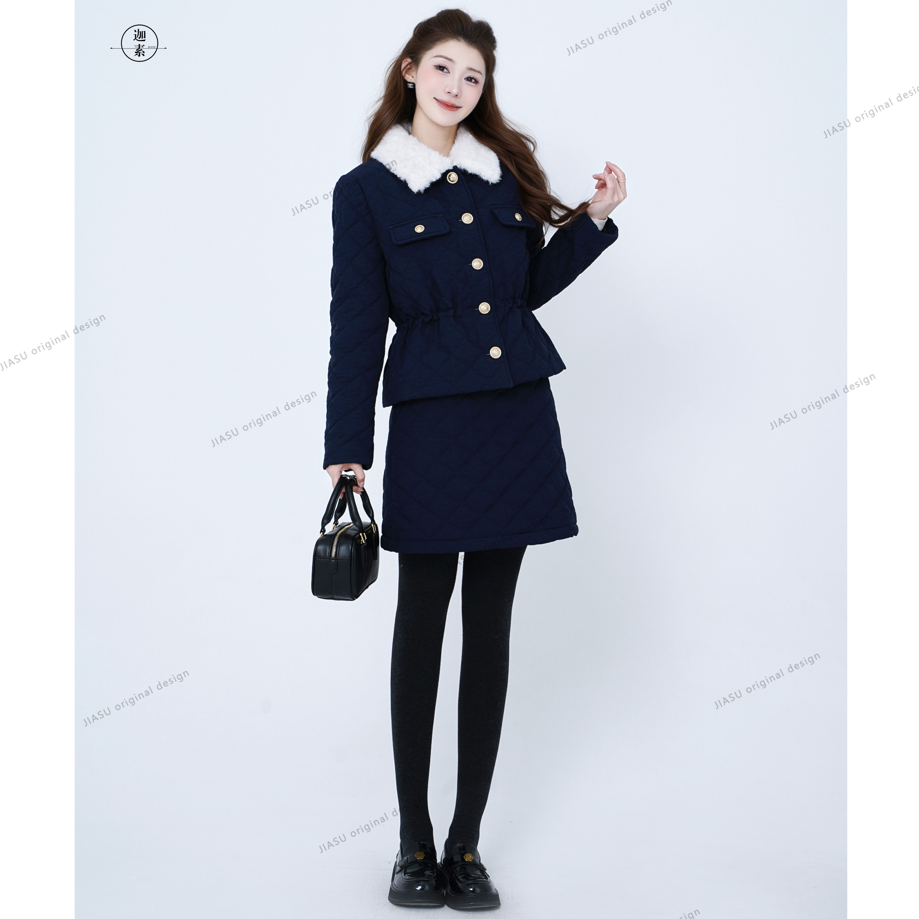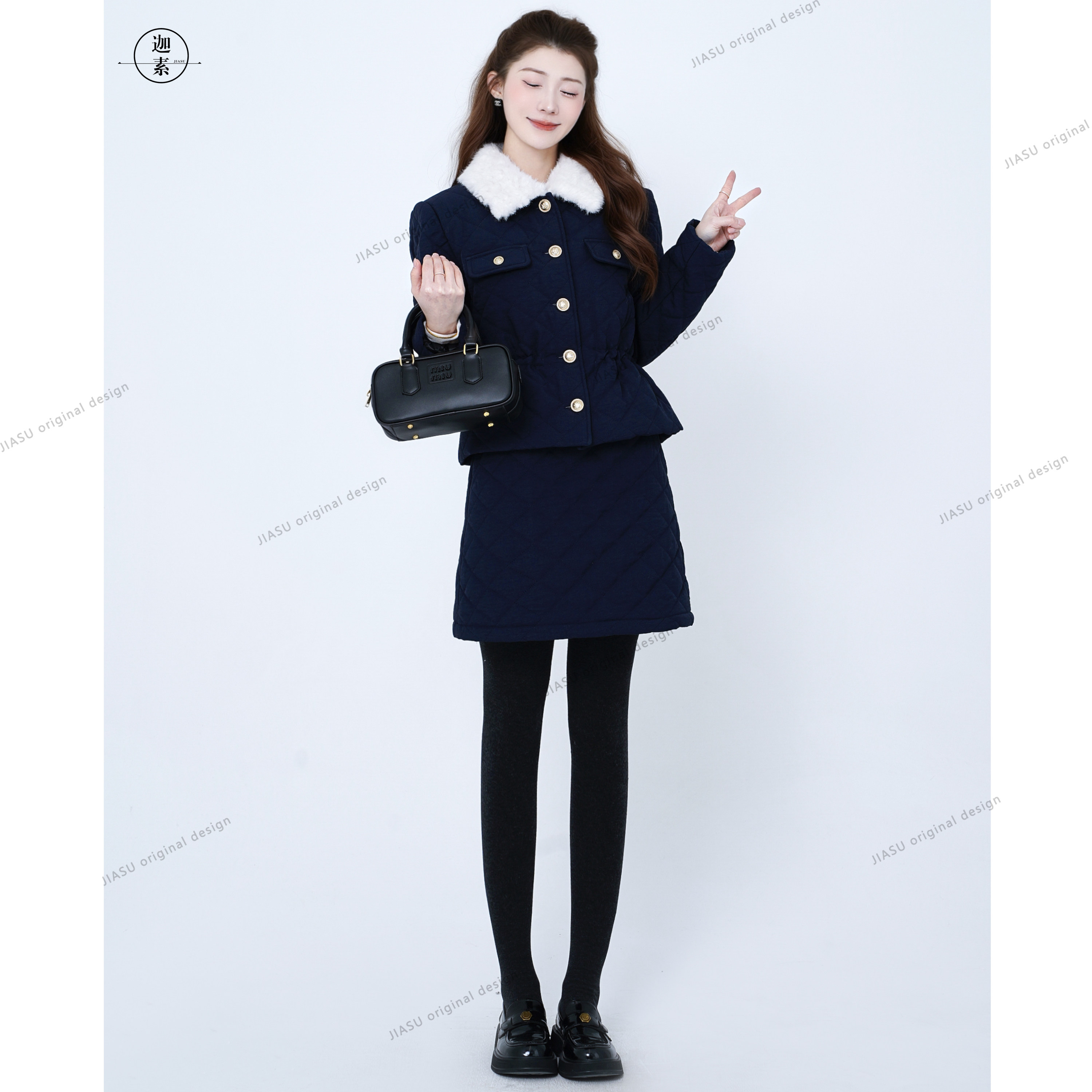 JIASU 【邮差的冬信】翻领百搭气质极简风小香羽绒服套装S646