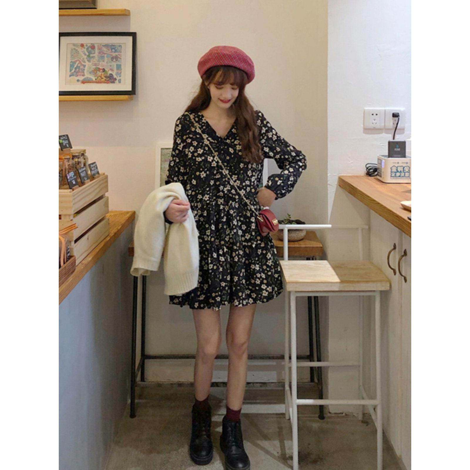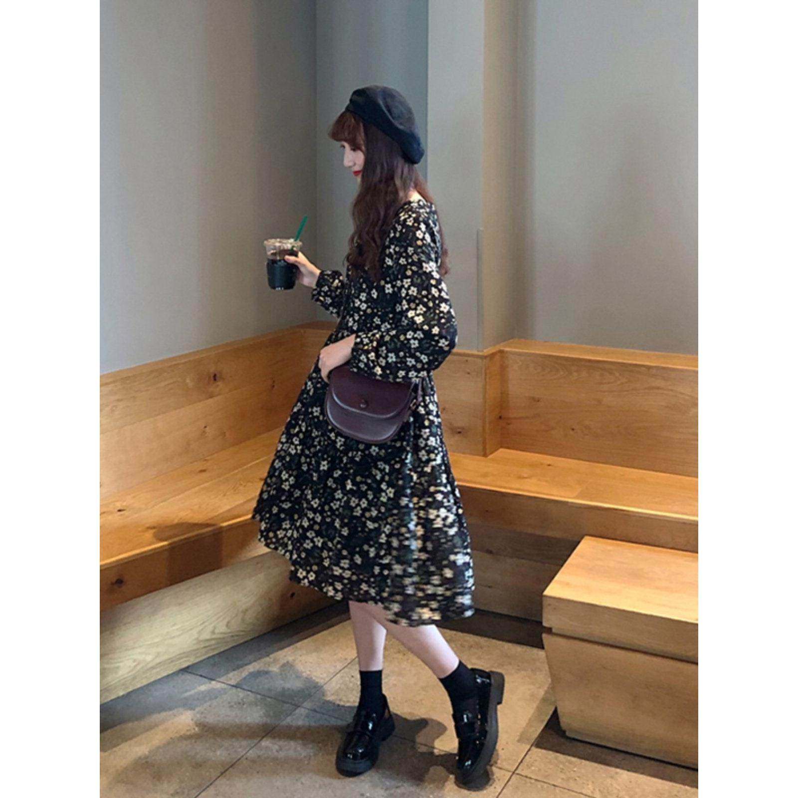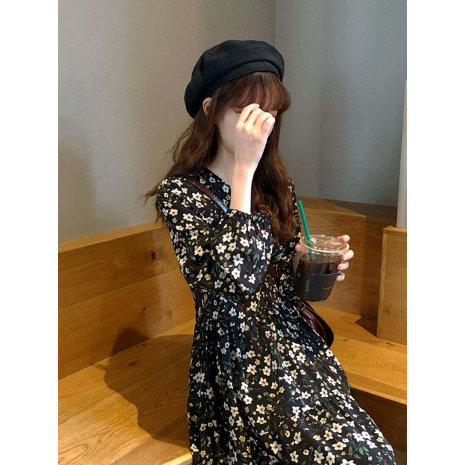 MUAMY秋装2025新款覆古桔梗赫本风小个子超仙气质显瘦碎花连衣裙