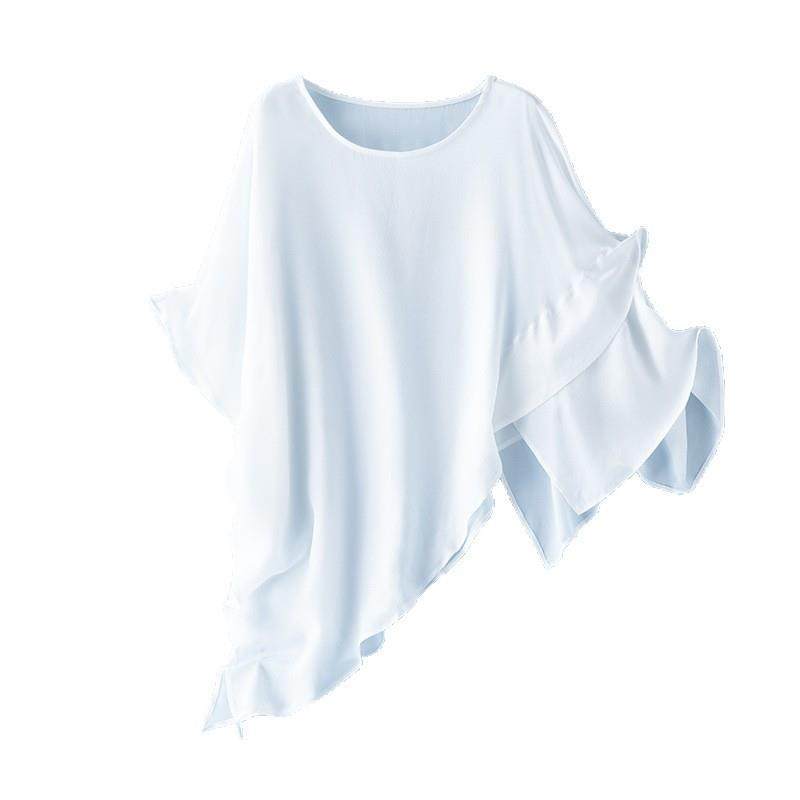 夏天遮阳女纯色夏季白色桑蚕丝外搭披风真丝斗篷气质防晒衫85172