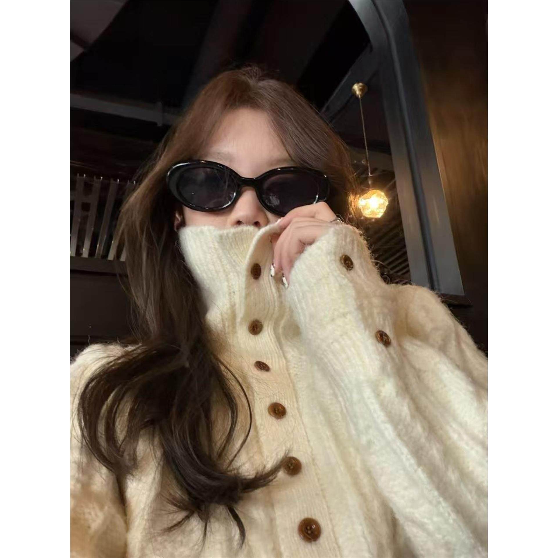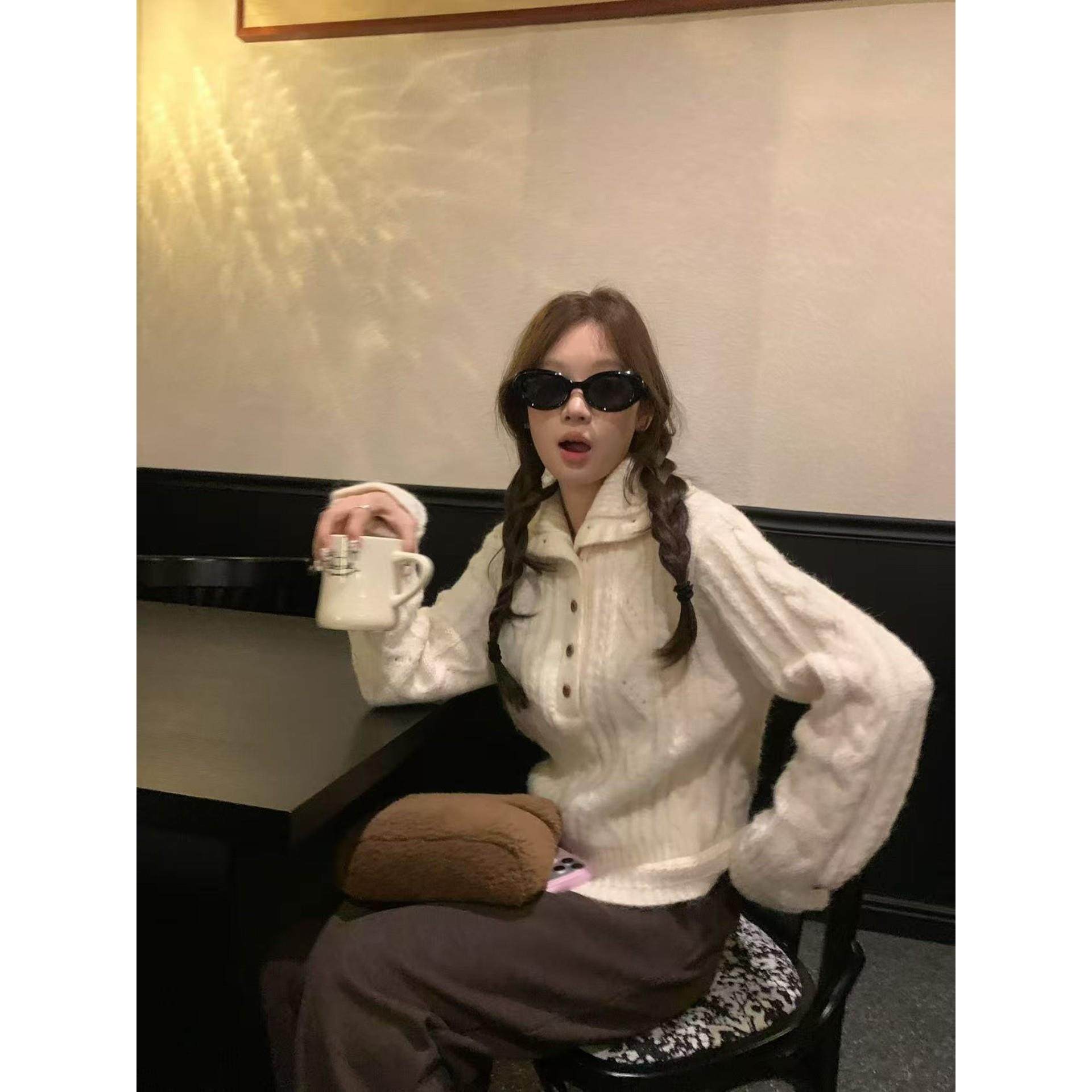 im向 雪季情诗 慵懒高领系扣绞花套头毛衣女复古绒感显瘦针织上衣