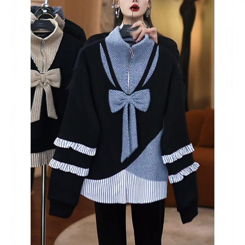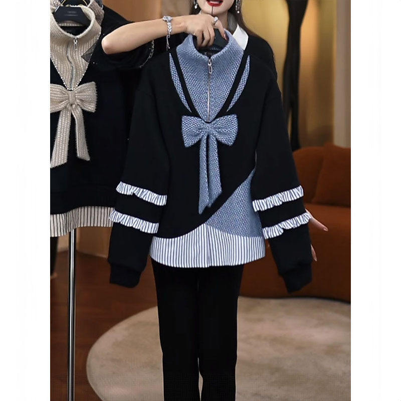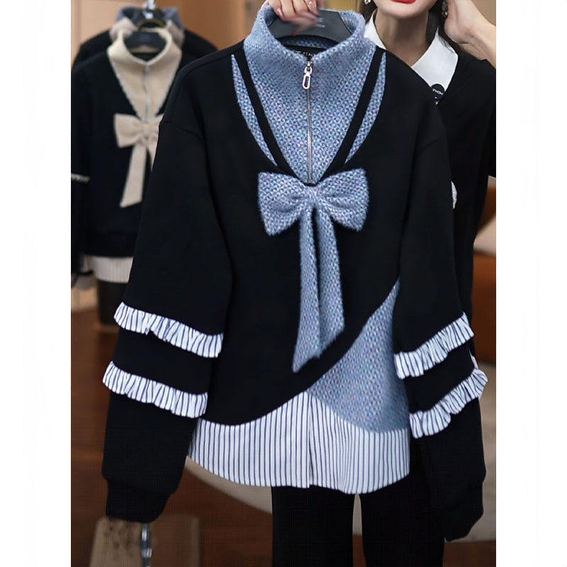 韩版假两件拼接卫衣女装2025冬季新款时尚气质减龄加绒保暖上衣潮