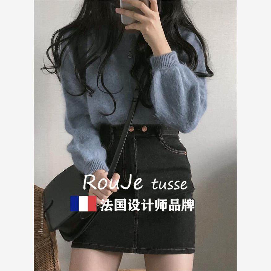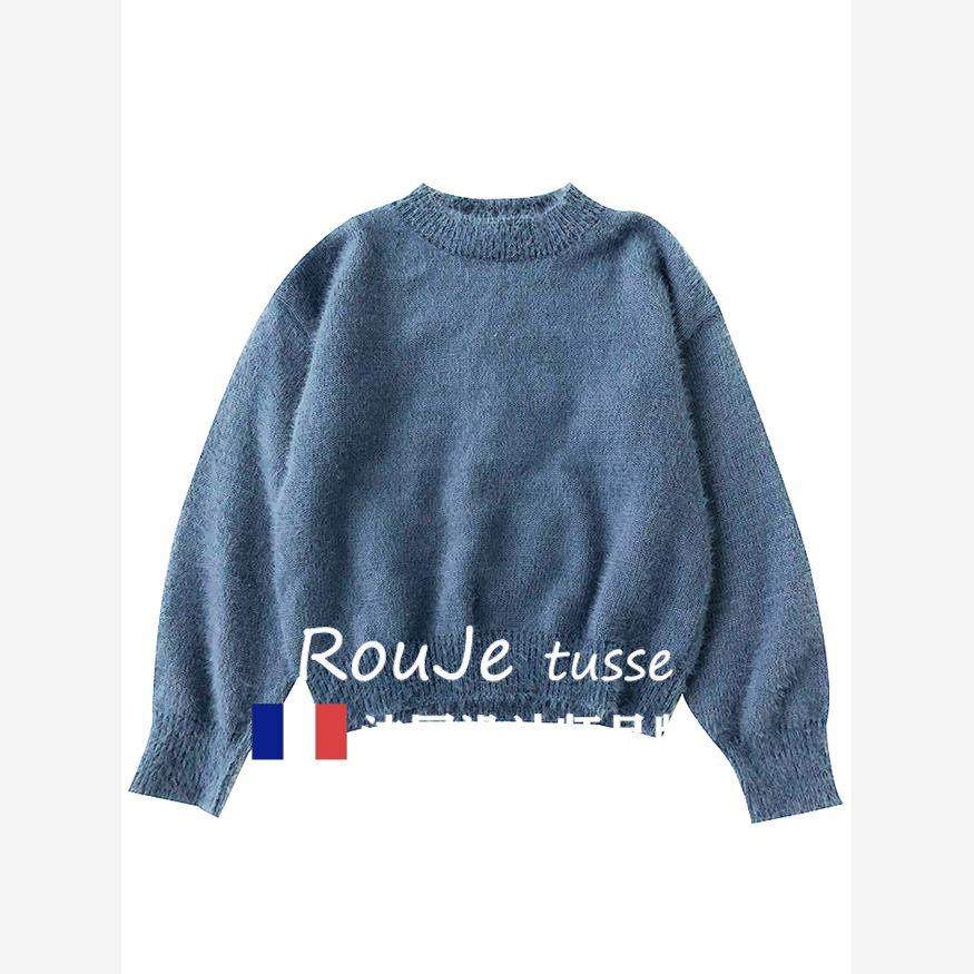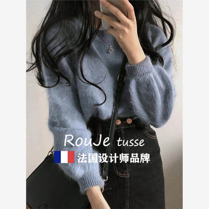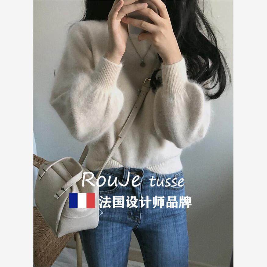 法国Rouje tusse兔绒毛衣女秋冬宽松慵懒软糯短款打底针织衫上衣