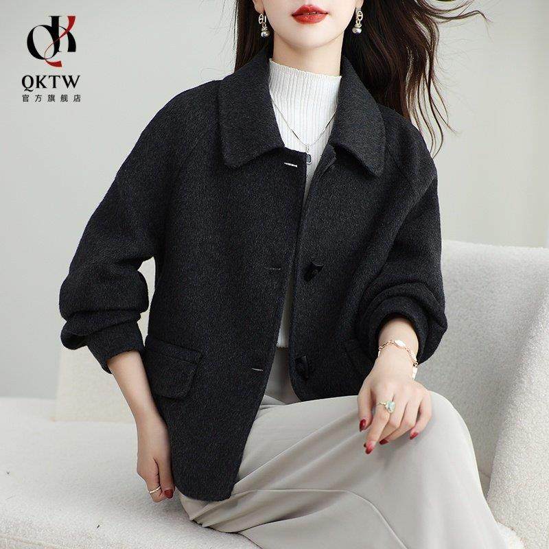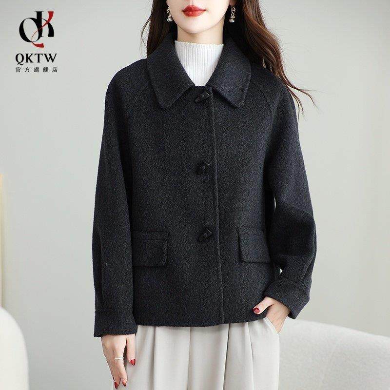 首页> 女装> 毛呢外套女2025冬季新款中年妈妈双面绒羊毛大上衣牛角扣短款大衣