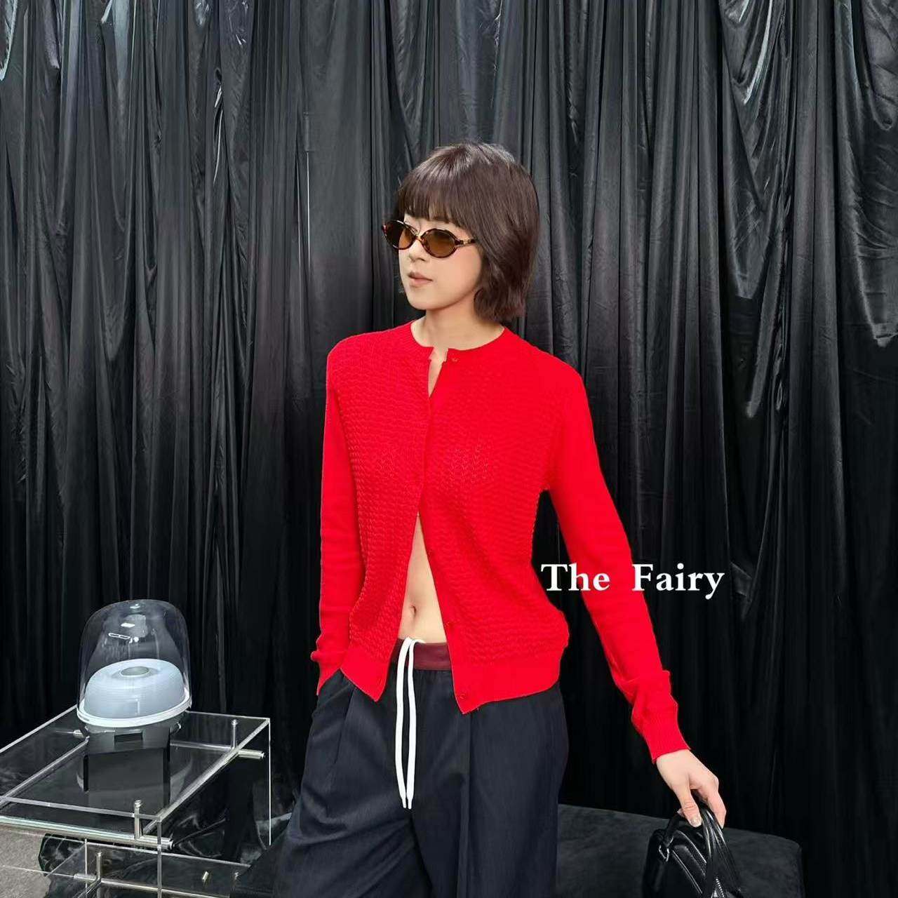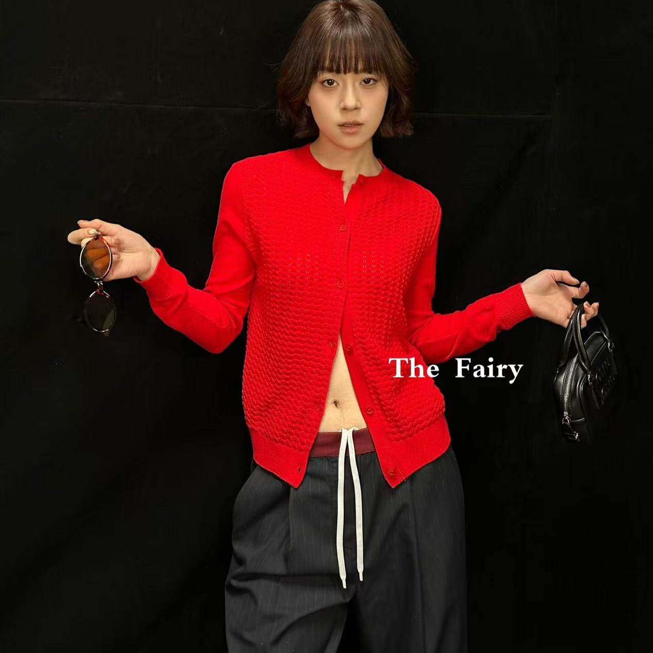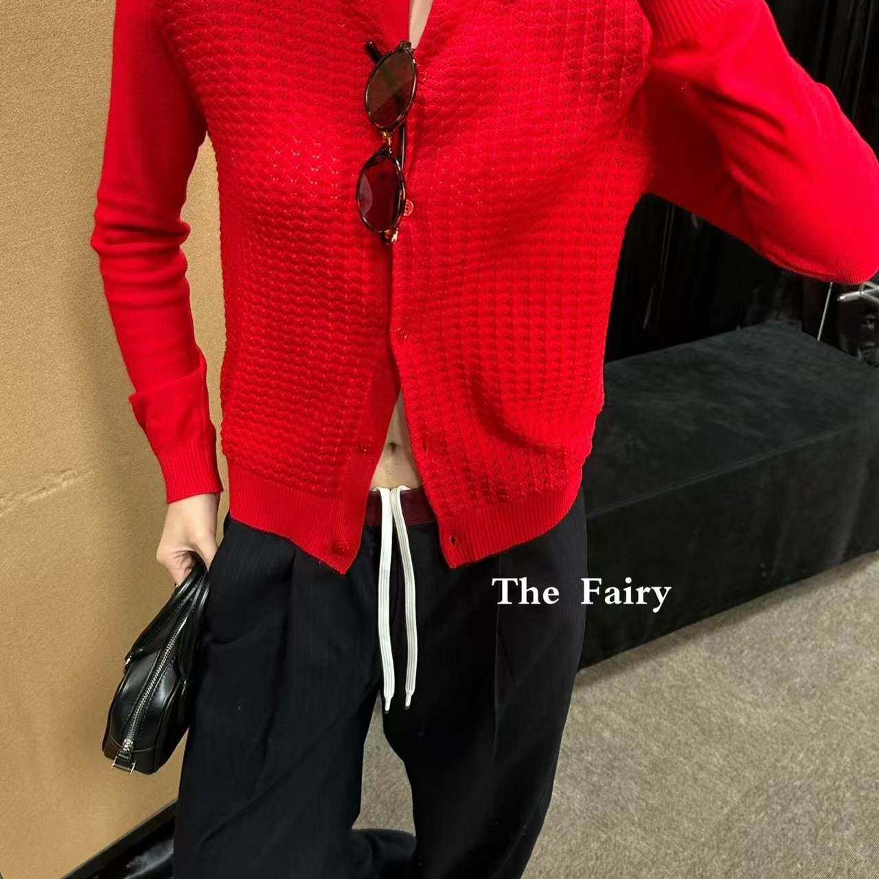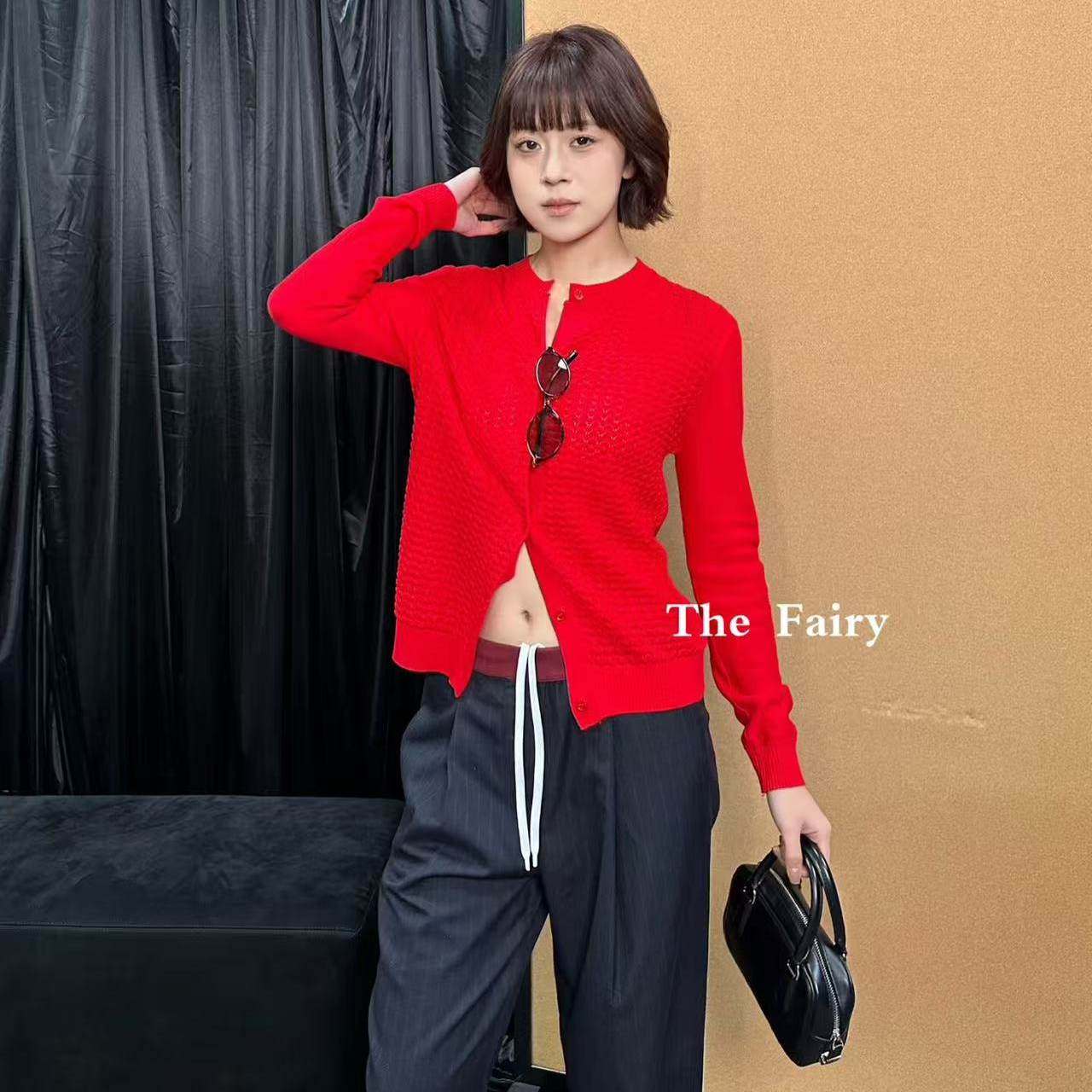 好漂亮红色针织羊毛开衫外套外套女2026年早春新款短毛衣宽松休闲