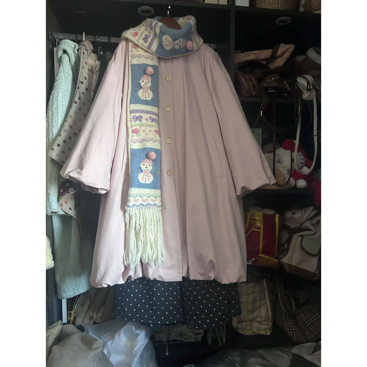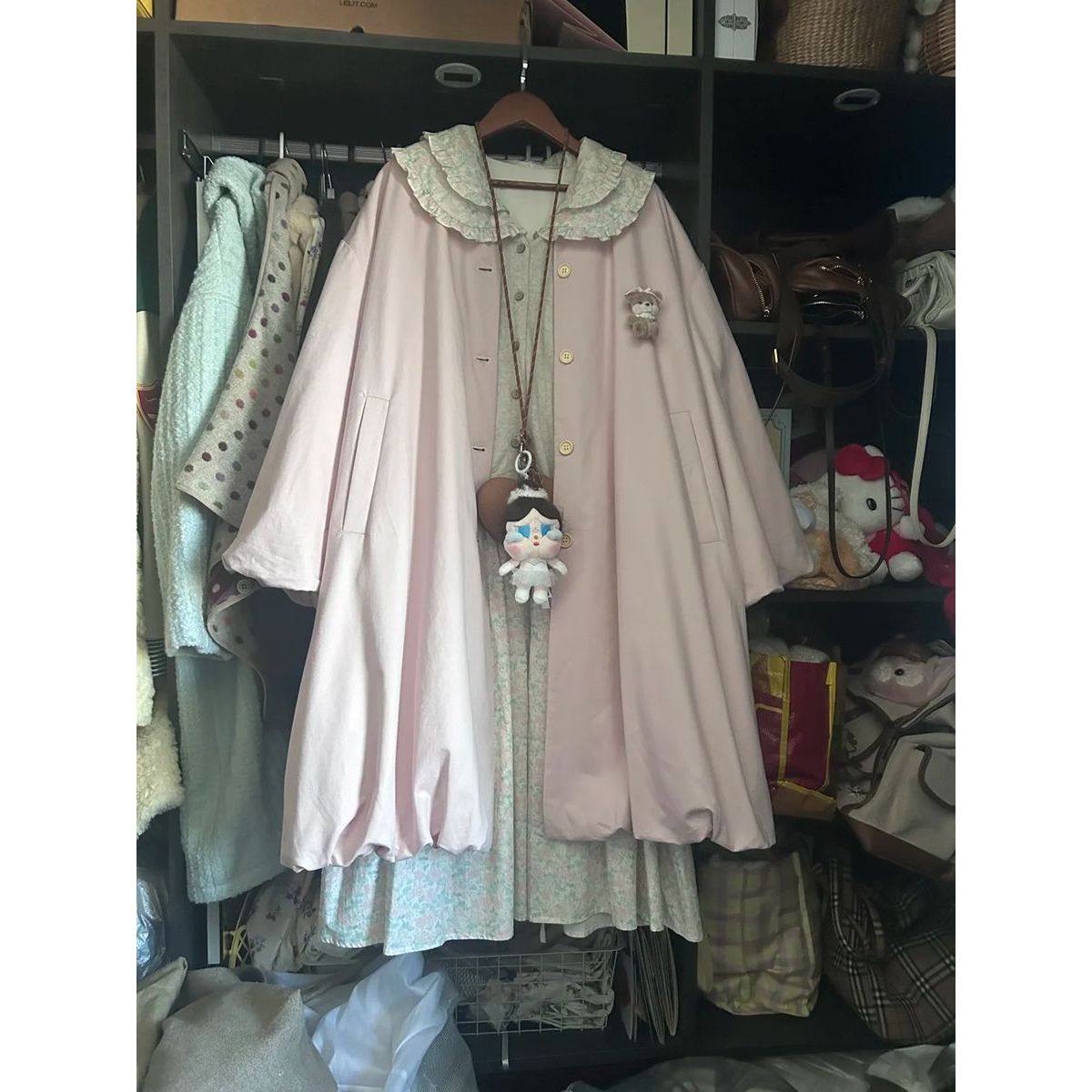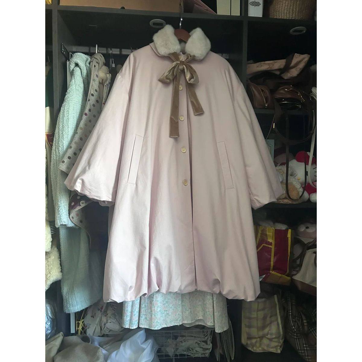 日系森系古着感小魔女斗篷大衣小众复古宽松保暖可爱花苞外套冬季