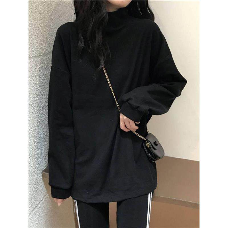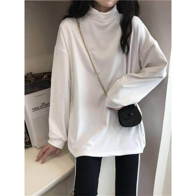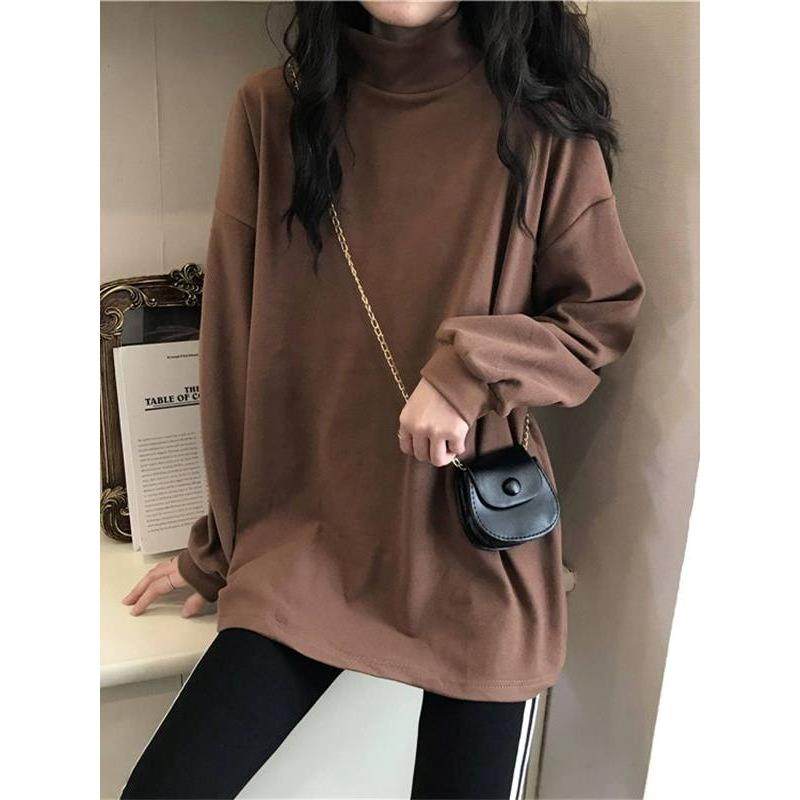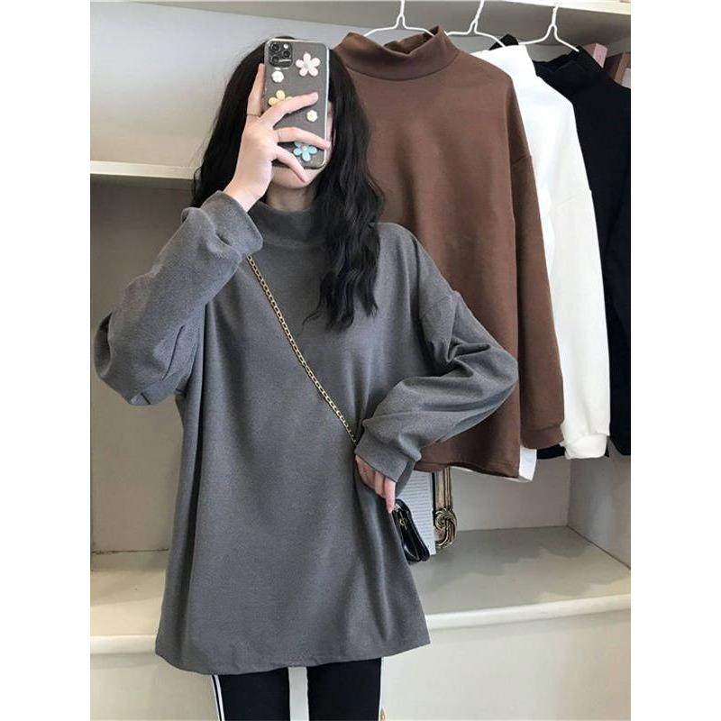 德绒加厚加绒遮屁股半高领打底衫女内搭宽松长袖t恤胖mm保暖上衣