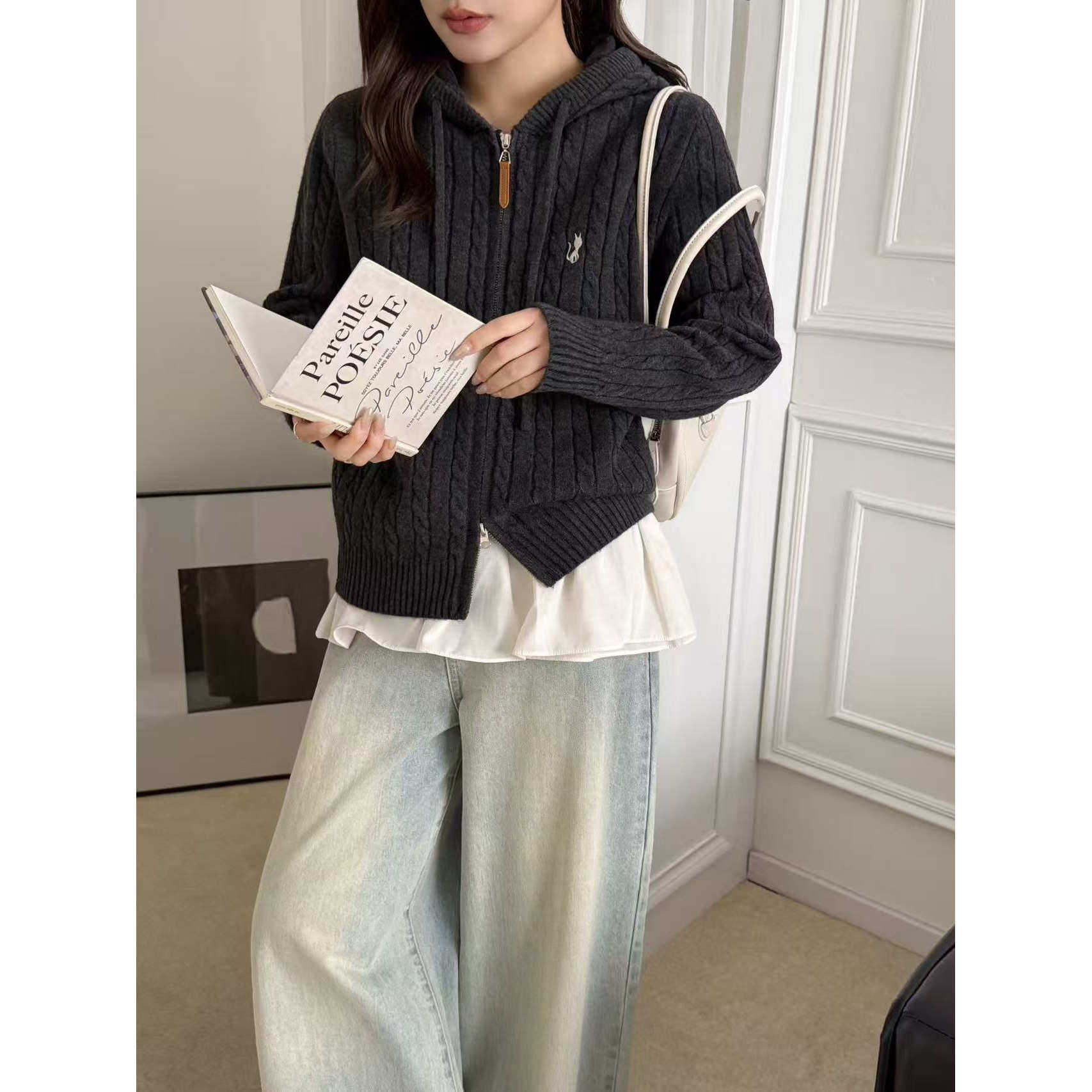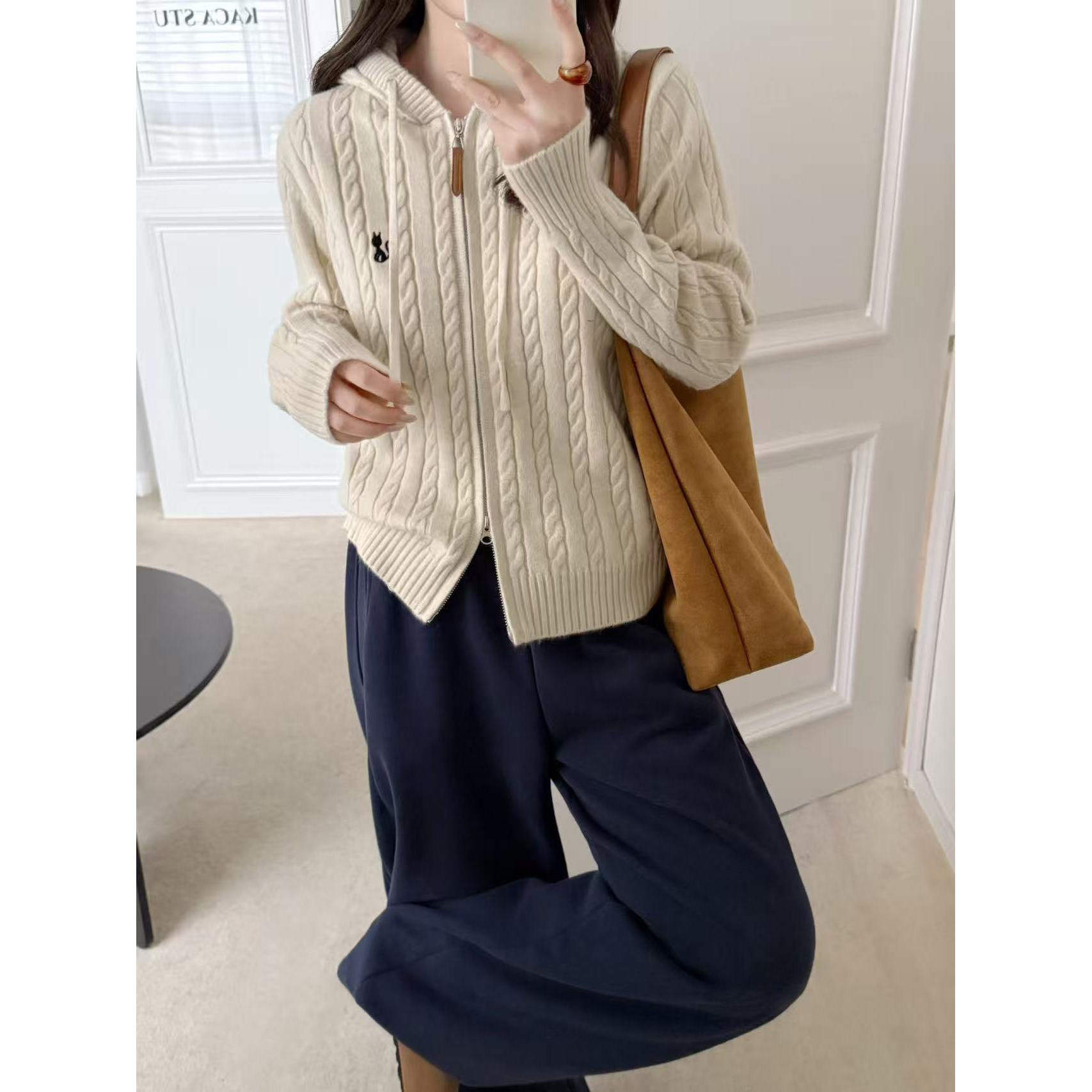 【思文Kiki】高定韩版麻花纹连帽开衫 F5-89662