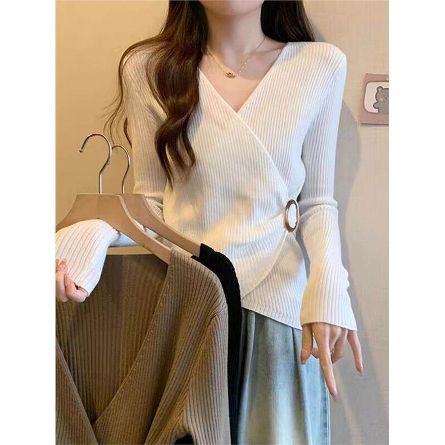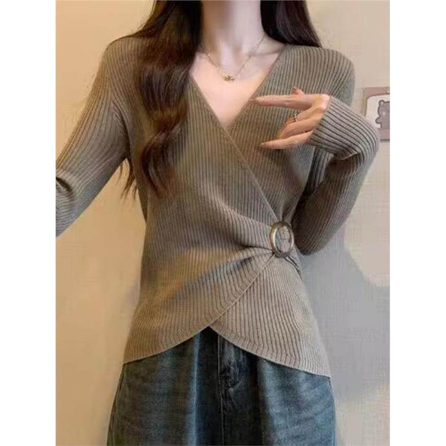 巨好看的早秋v领打底衫女秋装2025新款内搭修身毛衣显瘦针织上衣