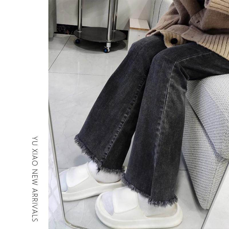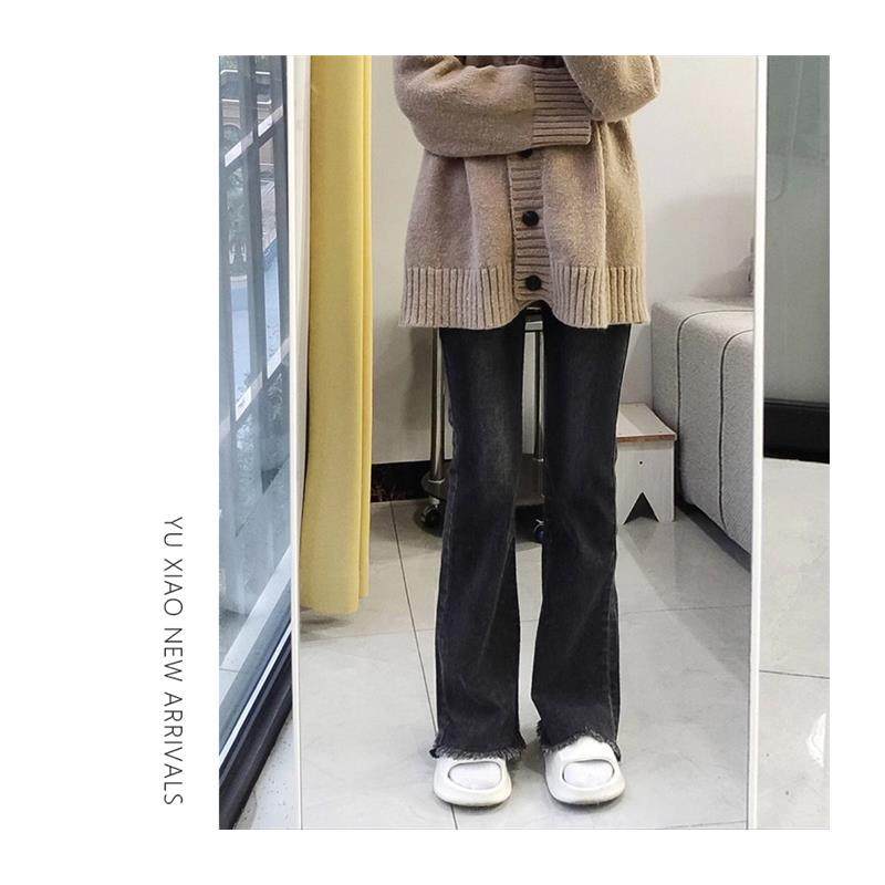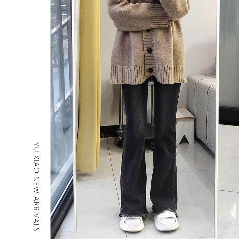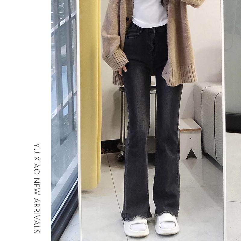梨形身材微喇牛仔裤女夏季新款高腰大码胖mm显瘦毛边弹力喇叭裤子