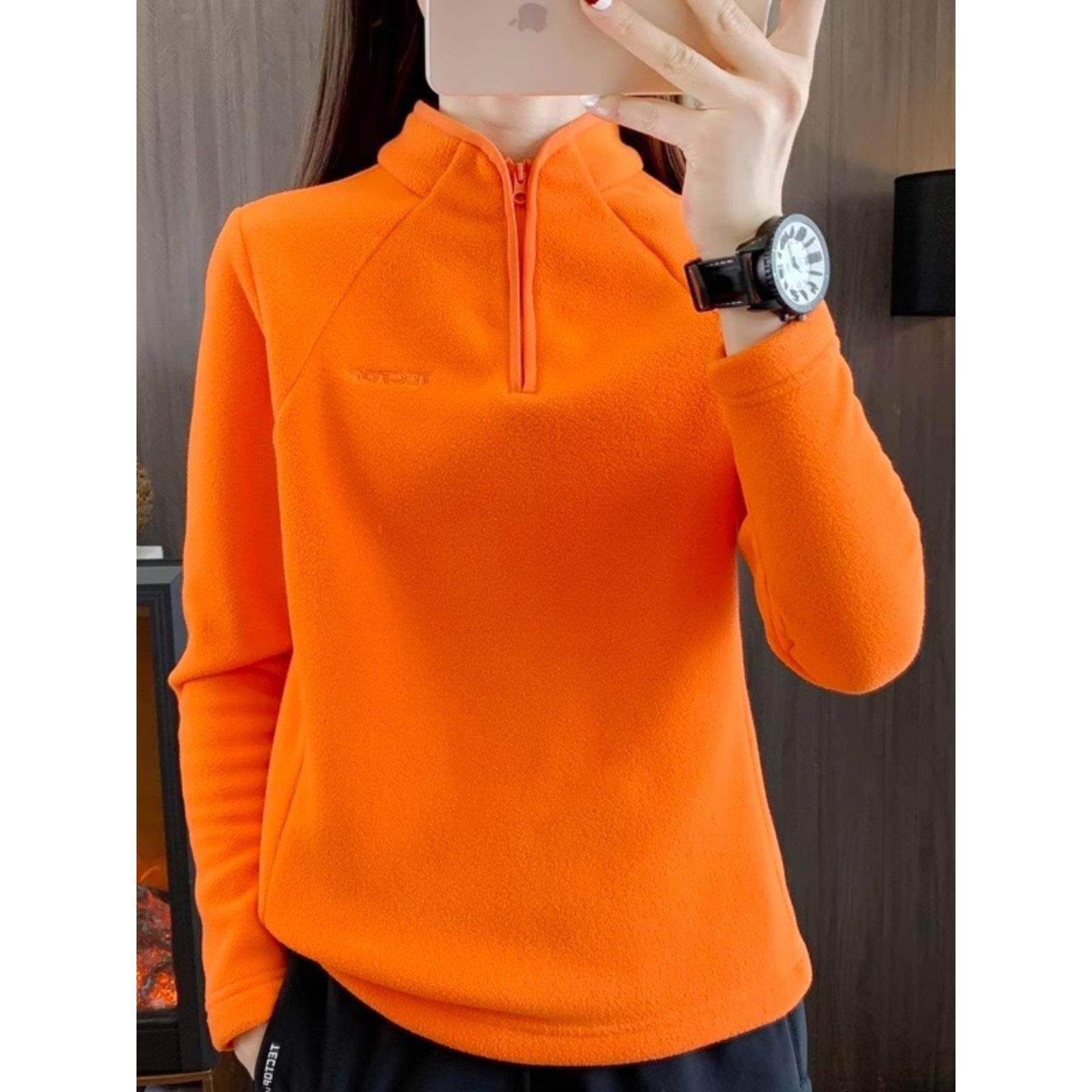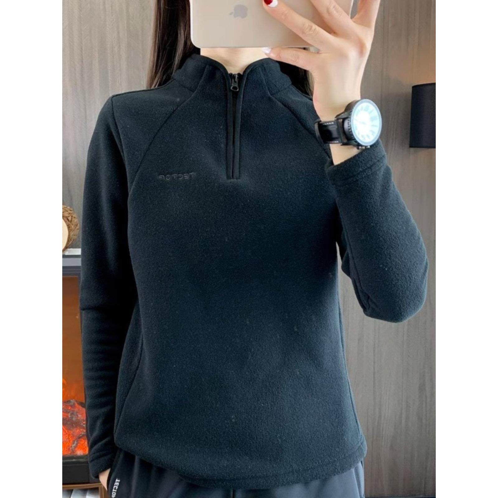 白色立领半拉炼女士运动衫2025春秋季宽松休闲加厚极地羊毛保暖套