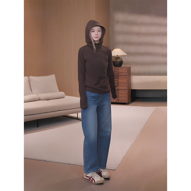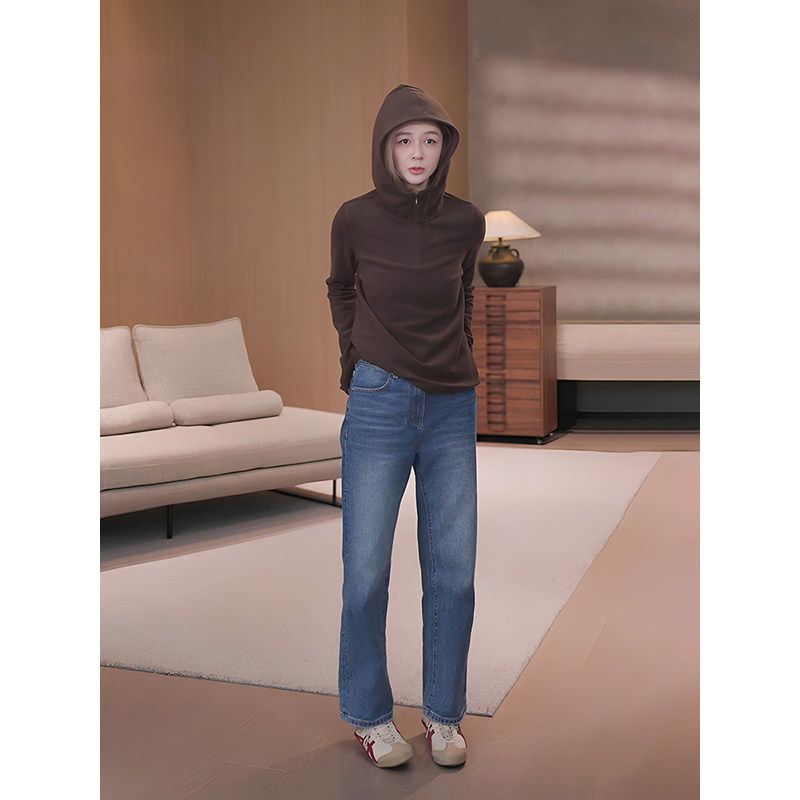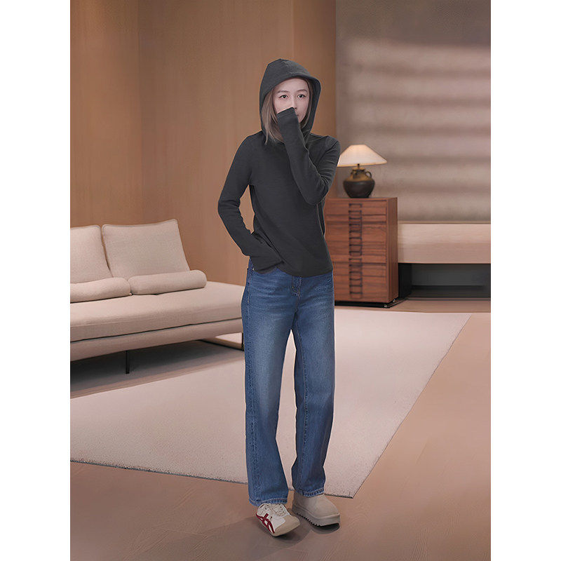 马老板MZX加绒黑色连帽卫衣女2025新款冬季内搭设计感上衣可外穿
