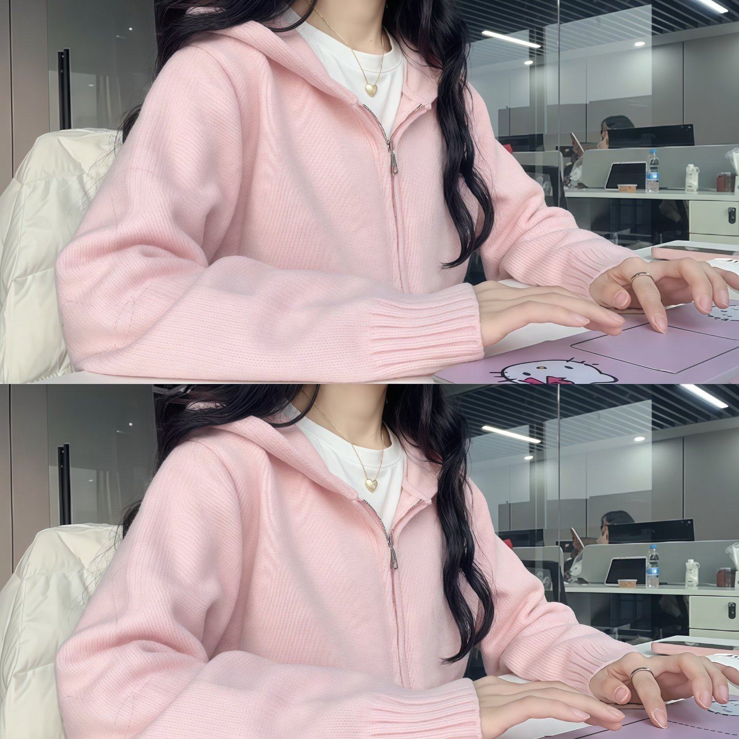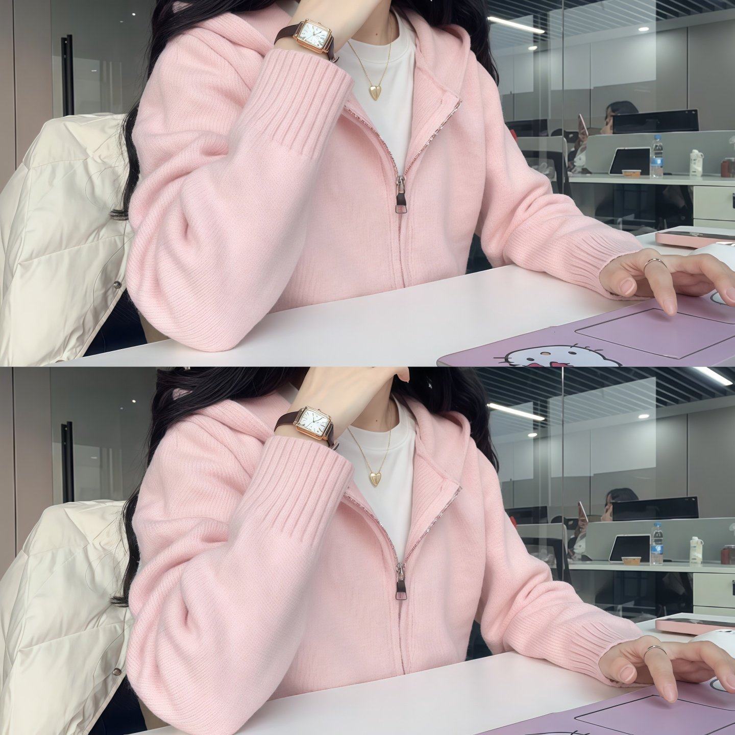粉色连帽拉链毛衣女冬季可外穿内搭超好看针织开衫叠穿慵懒风上衣