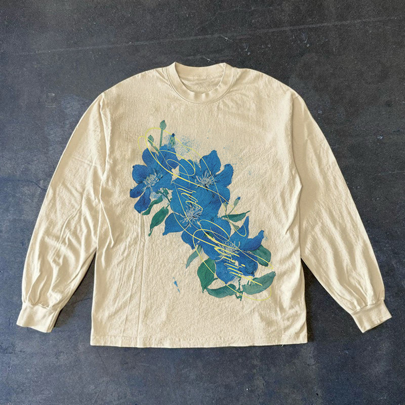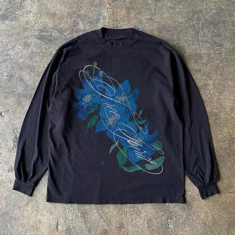 300克重磅!百搭高街t恤洋气个性长袖宽松潮流休闲上衣小众情侣装